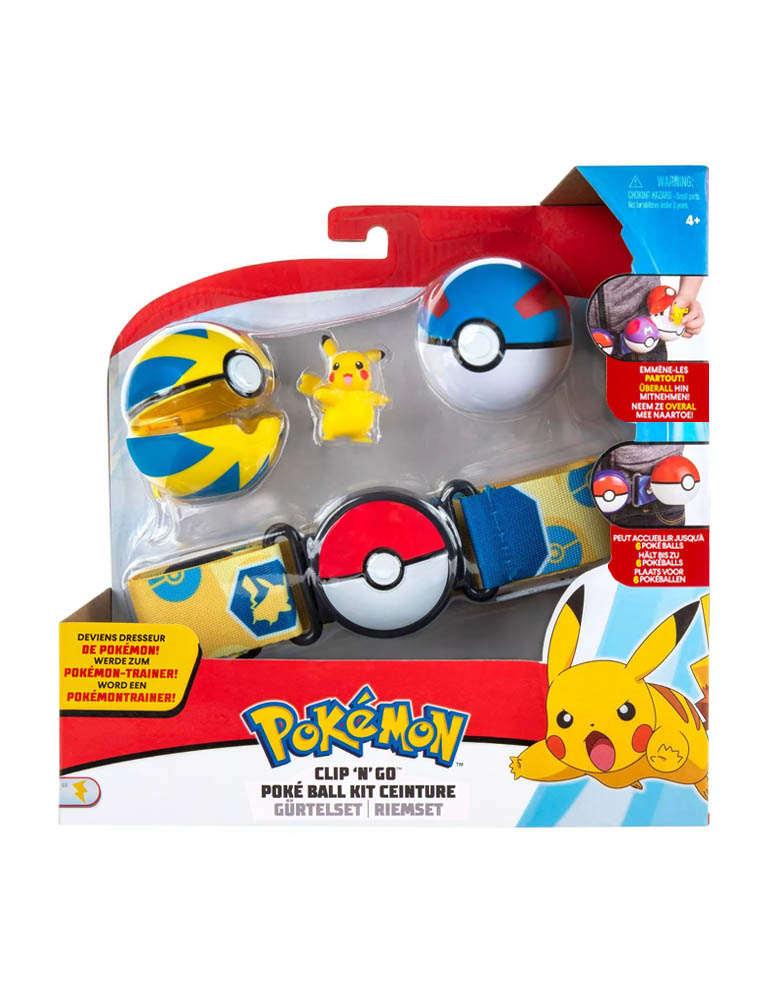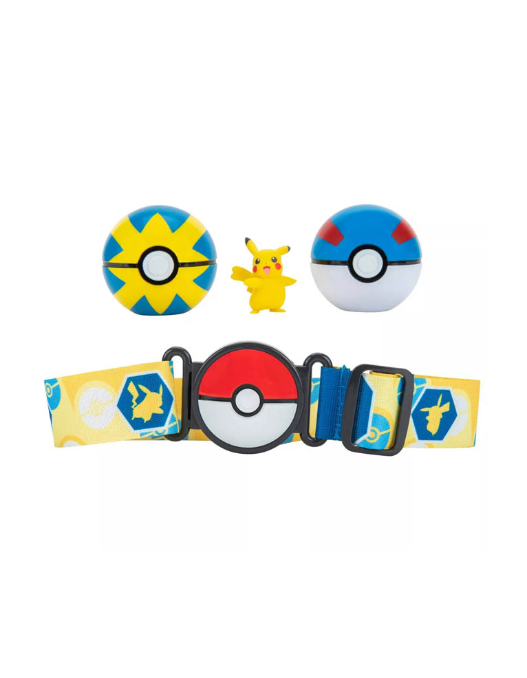Zestaw zawiera jedną 5 cm figurkę Pikachu, jeden Dive Ball, jeden Pokéball oraz jeden regulowany pas Clip ‘N’ Go, który może pomieścić nawet 6 Pokéballi. Dzięki niemu możesz łatwo zabrać Pokéballe ze sobą i jesteś gotowy do bitwy zawsze i wszędzie!