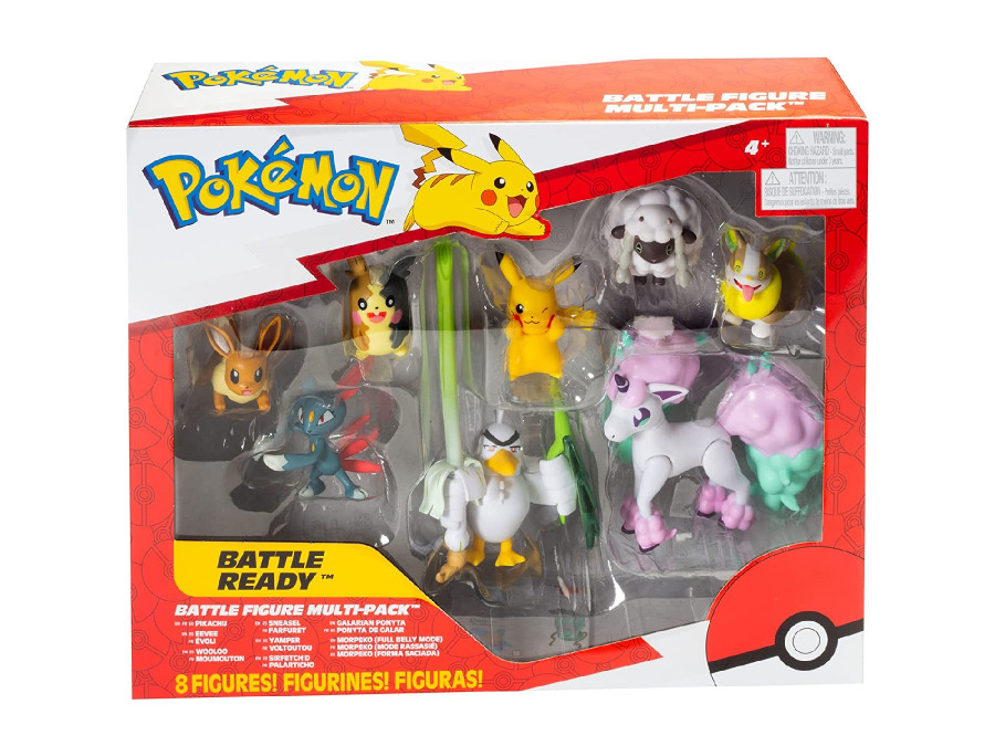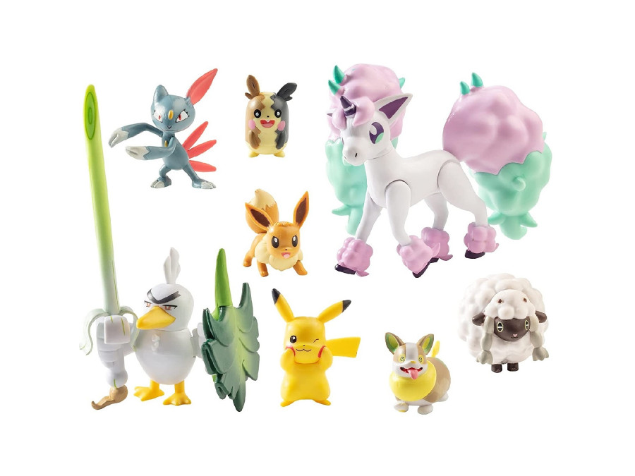 Dzięki temu niezwykłemu zestawowi 8 figurek (Yamper, Wooloo, Pikachu, Hangry Morpeko, Full Belly Morpeko, Toxel, Galarian Ponyta, Sirfetch'd) możesz łatwo przenieść Świat Pokémonów do swojego pokoju!