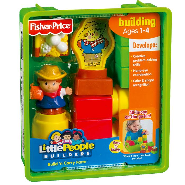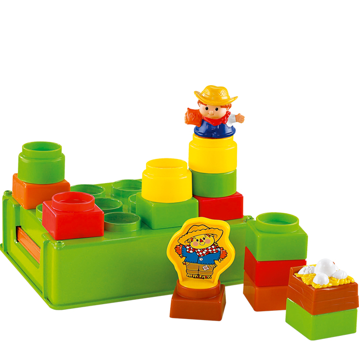 Zestaw farma to klocki z serii Little People, które znajdują się w plastikowych pojemnikach z uchwytem i dzięki temu można je łatwo przenosić. Pojemnik posiada specjalną powierzchnię, do której można przymocować klocki. Charakterystyczny kształt klocków, który jest idealny do trzymania w małych rączkach i ułatwiają małym dzieciom budowanie wszystkiego, czego zapragną!