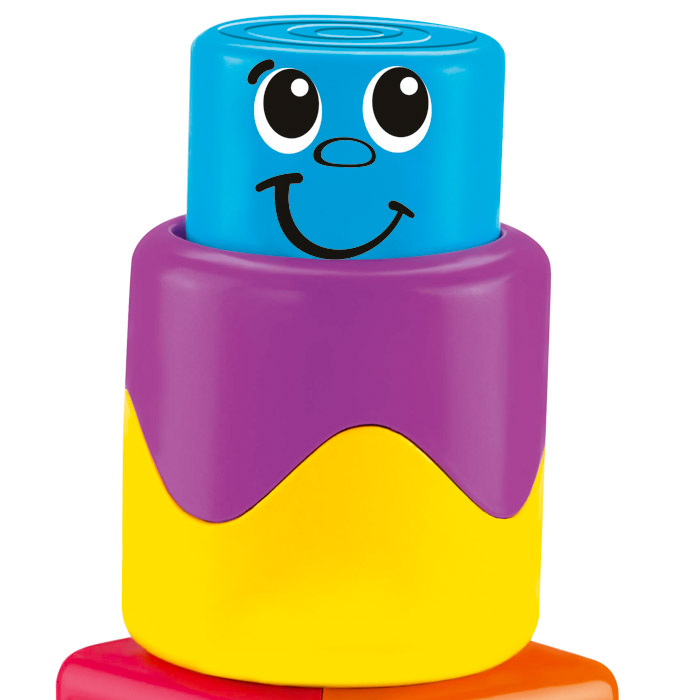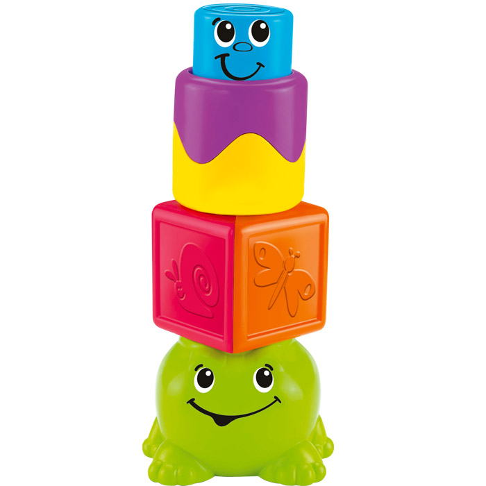 Zestaw klocków z zabawnymi postaciami dla dzieci! Żabka ma w środku grzechoczące koraliki. W komplecie z żabką znajdują się także 2 klocki z niespodzianką.