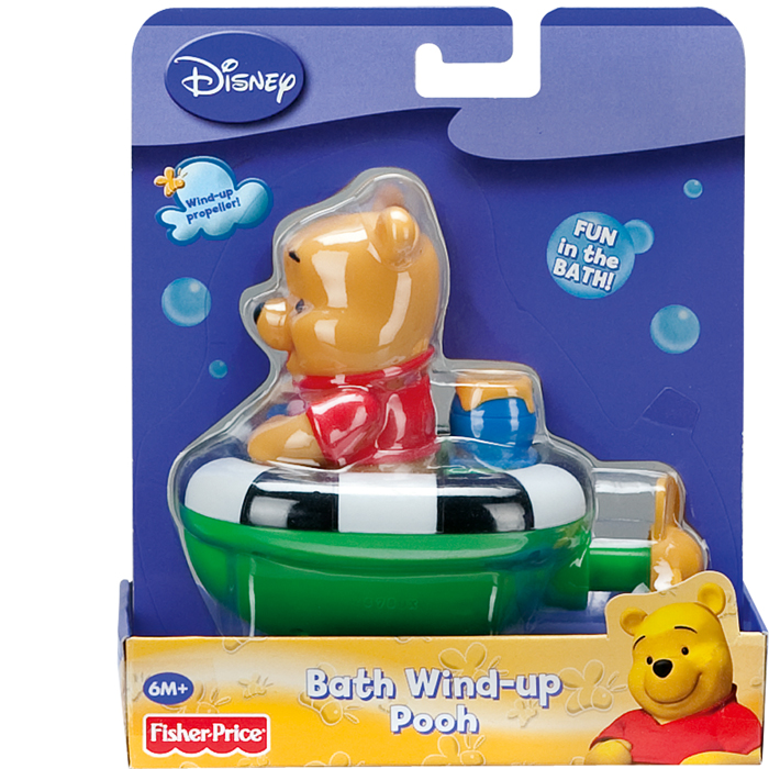 Kubuś Puchatek należy do serii kolorowych, pływających zabawek do kąpieli. Każdy z bohaterów Kubusia Puchatka po nakręceniu wykonuje zabawne ruchy. Kubuś Puchatek wiosłuje w łódeczce, Kłapouchy rusza uszami płynąc na tratwie a Tygrysek wywija ogonem i obraca się w swym kole.