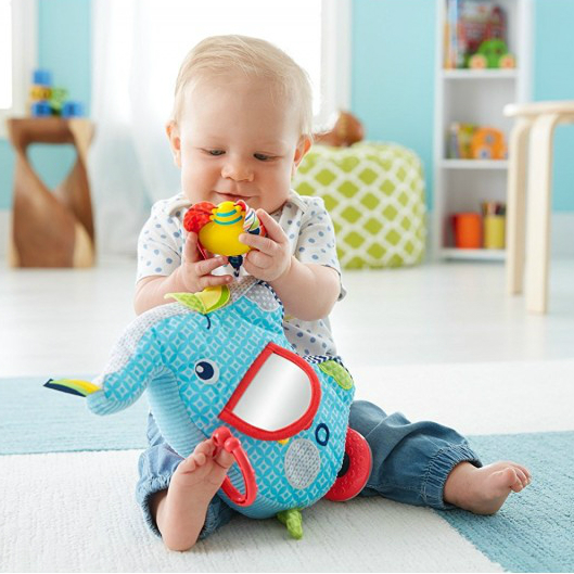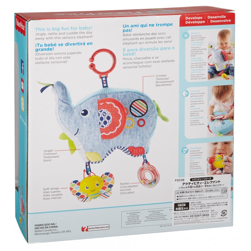 Fisher-Price Aktywizujący słonik zawieszka FDC58 to niezwykły pluszak który, sprawi dziecku mnóstwo frajdy różnorodnością materiałów i kolorów. Duży, miękki słonik będzie niezapomnianym przyjacielem i pierwszym towarzyszem zabaw Twojego maluszka, zapewniając mu mnóstwo doznań dotykowych dzięki użyciu. Wychodząc na spacer, możesz przyczepić słonika do torby lub wózka, żeby cały czas zabawiał Twoje dziecko.