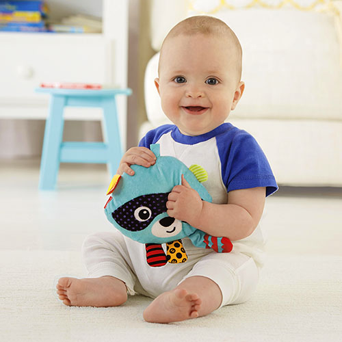 Poznaj Liska, nowego Chichoczącego Zwierzaka! Miękki i milutki Lisek reaguje chichotem i wesołymi odgłosami na każde potrząśnięcie i ściśnięcie, tym samym pomagając zrozumieć maluszkowi związek przyczynowo-skutkowy! Długi ogon oraz maska odzwierciedlają psotną naturę Liska. Żywe kolory, wesołe wzory i miękkie faktury pomagają stymulować zmysły dziecka. Wszystkie urocze Chichoczące Zwierzaki, tak jak każde dziecko, mają niepowtarzalny, słodki i zaraźliwy śmiech!