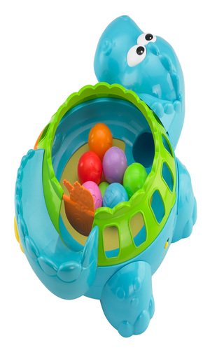 Muzyczny dinozaur z piłeczkami to mnóstwo zabawy! Piłeczki podskakują albo toczą się po ogonie dinozaura i wypadają mu przez paszczę! Kręcąc obrotowym wałeczkiem, dziecko uruchamia zabawną melodyjkę lub dźwięki, dzięki czemu zaczyna dostrzegać relacje między przyczyną i skutkiem. Chwytanie, upuszczanie i podnoszenie piłeczek to świetny sposób na rozwijanie zdolności motorycznych i trening zręczności! W zestawie 6 kolorowych piłeczek. Zabawka wymaga 3 baterii C.