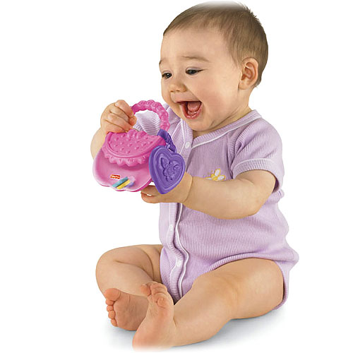 Przepiękny gryzak w kształcie torebki! Niezastąpiona propozycja dla małej damy. W różowej torebce z serii Brilliant Basics znajdują się trzy magiczne koraliki, które grzechoczą podczas poruszania. Torebka posiada lusterko w kształcie serca, w którym może przejrzeć się mała księżniczka. Dodatkowo doczepiony jest gryzak w kształcie kluczyka.