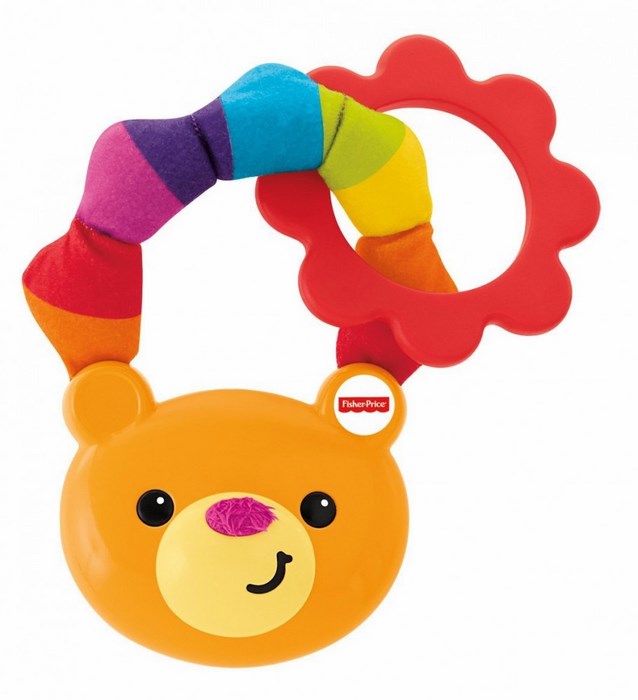 Stymuluj zmysły dziecka tym kolorowym gryzaczkiem-grzechotką z buźką misia! Miękkie powierzchnie do gryzienia oraz klekoczący pierścień urozmaicają zabawę. Dziecko może bez trudu trzymać zabawkę i potrząsać nią, a żywe kolory i miękkie faktury pomagają stymulować zmysły malucha. Doskonały do zabawiania dziecka w domu lub na spacerze.