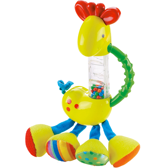 Potrząśnij żyrafą dla zabawy oraz by uzyskać uspokajające dźwięki. Miękkie nogi, kopyta i ogon żyrafy doskonale nadają się do gryzienia. Wstążkowa grzywa i uszy do gryzienia dają nieustanne bodźce dla zmysłów. Grzechotka Żyrafa Rainforest rozwija zdolności manualne dziecka i jest wspaniałym sposobem na naukę i poznawanie świata poprzez zabawę.