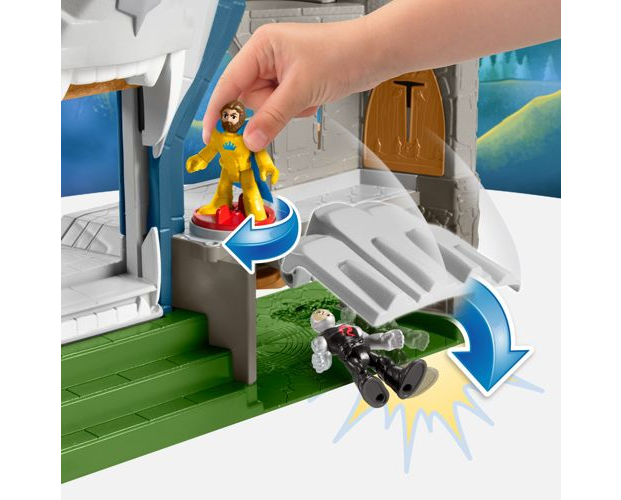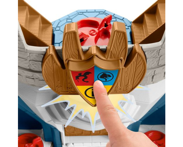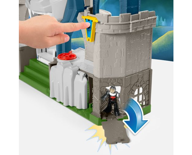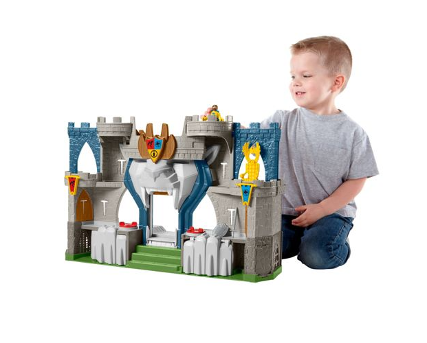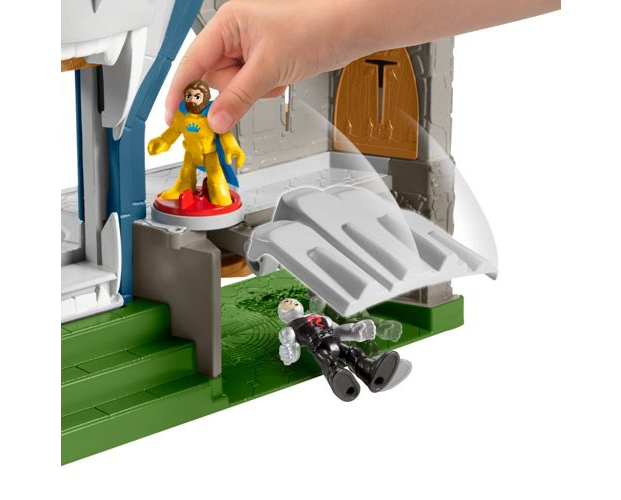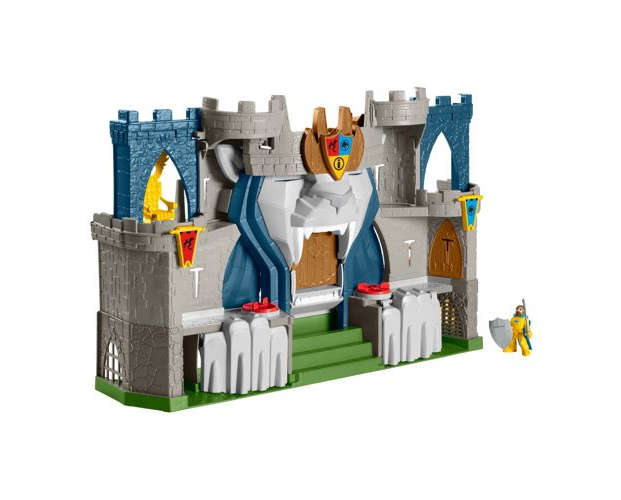 Przedszkolaki mogą brać udział w epickich średniowiecznych bitwach, broniąc Lwiego zamku królewskiego Imaginext® od Fisher-Price®. Opuszczane fortyfikacje, składana wieża, loch oraz lwie łapy łapiące i przewracające wrogów to tylko niektóre z wyjątkowych funkcji, dzięki którym masz pełną kontrolę nad akcją. Dołącz do zestawu drużynę czerwonych i niebieskich rycerzy z serii Imaginext® Zamek, aby rozegrać bitwę. (Figurki są sprzedawane oddzielnie, zależnie od dostępności).
