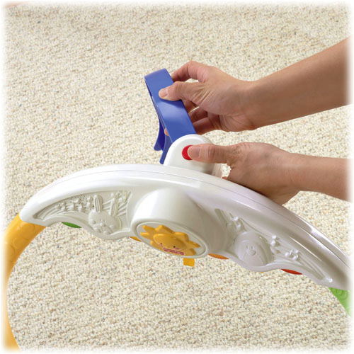 Miękki kolorowy materacyk zapewnia dziecku przyjemne, wygodne miejsce do zabawy. Przyrząd jest łatwy do składania, co każda mama szybko doceni – wystarczy wcisnąć guzik, aby złożyć tylny wspornik, co znakomicie ułatwia przenoszenie i przechowywanie.