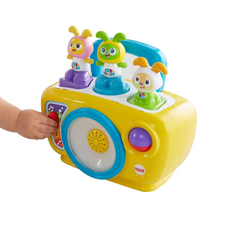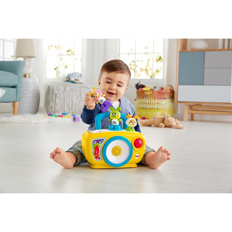 Fisher-Price interaktywny Magnetofonik BeBo FJB66 umożliwia zabawę na dwa sposoby, zależnie od rozwoju dziecka. Jasne światełka i zabawne melodie zachęcą malucha do tańca w rytm muzyki! Małe dzieci mogą kręcić wałeczkiem, aktywując muzykę i światełka, lub przesuwają "klikający" przełącznik. Każda postać ma inny kształt podstawy, dzięki czemu starsze dzieci mogą sortować figurki w specjalnych miejscach na magnetofoniku, włączając jeszcze więcej zabawnych brzmień i wypowiedzi! Wygodny uchwyt ułatwia przenoszenie magnetofoniku, dzięki czemu Twoja pociecha może się bawić, gdzie tylko zechce. Zabawa, która rozwija. Wygodny uchwyt ułatwia przenoszenie zabawki, dzięki czemu dziecko może bawić się, gdzie tylko chce.