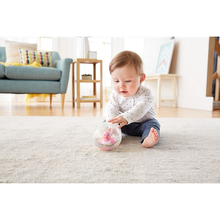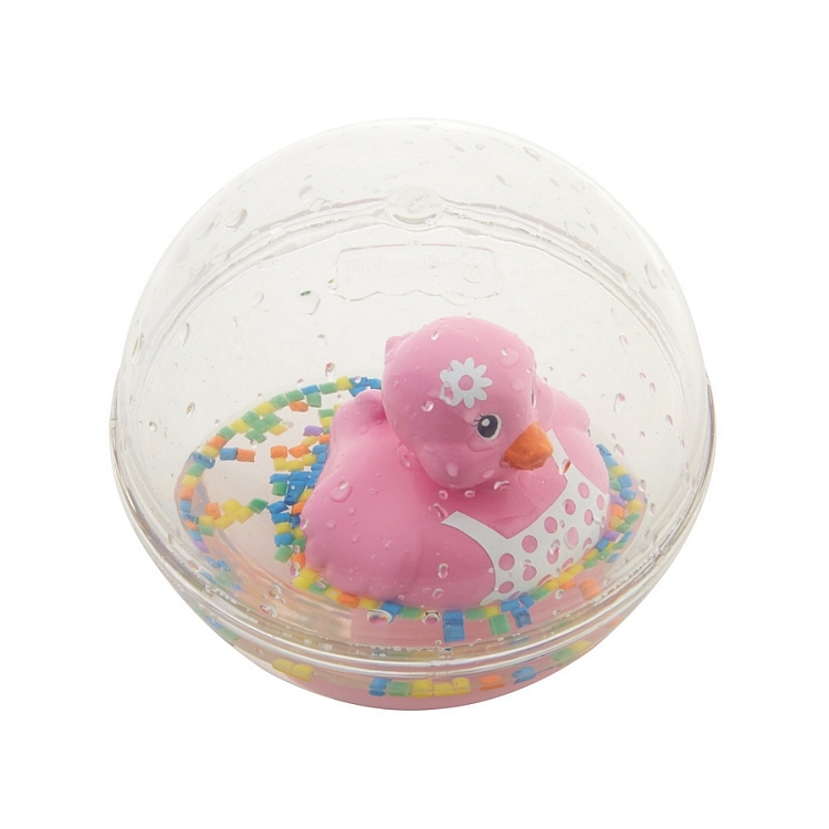 Kultowa Kąpielowa Kaczuszka Fisher-Price! Kaczuszka znajduje się w przezroczystej kuli wypełnionej płynem i kolorowymi koralikami, która doskonale unosi się na wodzie. Kulkę można również toczyć po podłodze, by bawić się w raczkowanie! Nieważne, jak długo malec będzie próbował zatopić, obrócić czy zanurzyć kaczuszkę w wodzie – śliczna zabawka i tak wróci na powierzchnię.