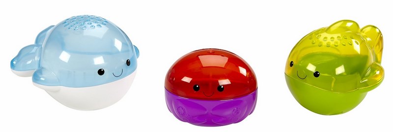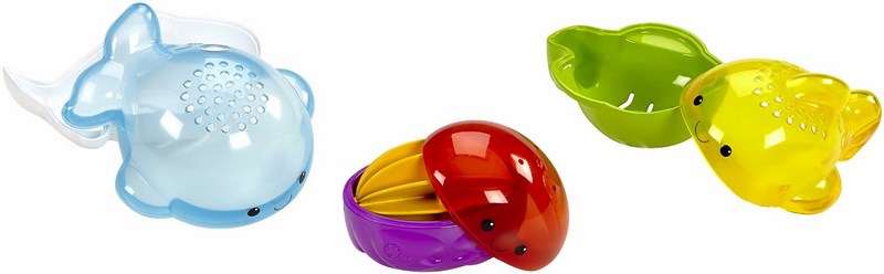 Czas na kąpielową zabawę z tymi trzema wodnymi kumplami – rybką, wielorybem i krabem – które można rozkładać na dwie części, aby bawić się w nabieranie, przelewanie i cedzenie wody! Krab ma nawet koło wodne, którym dziecko może kręcić podczas zabawy. Wszystkie zabawki można z powrotem w łatwy sposób połączyć, a ich rozmiary idealnie pasują do małych rączek dziecka.