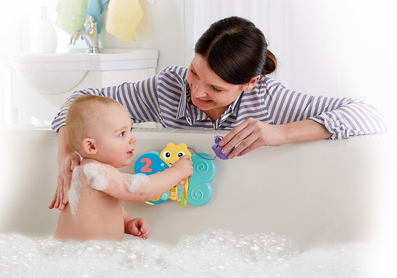 Dzięki kąpielowemu motylkowi-książeczce zarówno kąpiel, jak i proces uczenia się będzie o wiele przyjemniejszy! Dzięki dwóm przewracanym stronom z cyferkami maluch rozwinie swoje zdolności motoryczne i nauczy się liczyć od 1 do 4! Motylka można przyczepić do wanny za pomocą przyssawki, by przewracanie stron stało się jeszcze łatwiejsze.