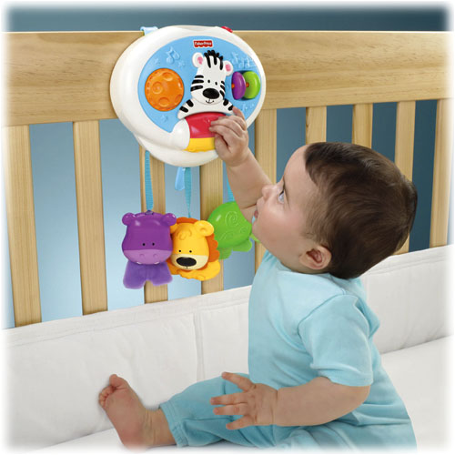 Ta zabawka z serii Brilliant Basics jest karuzelą ze zwierzątkami, a gdy dziecko podrośnie stanie się łóżeczkowym centrum zabaw. Na przednim panelu dziecko odkryje uśmiechniętą zebrę oraz moc intrygujących zabaw. Pałąk z lewkiem, żółwikiem i hipopotamem jest odczepiany.