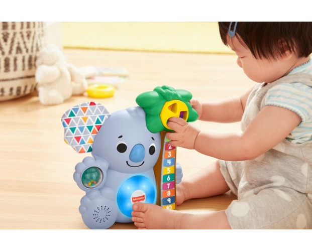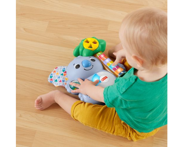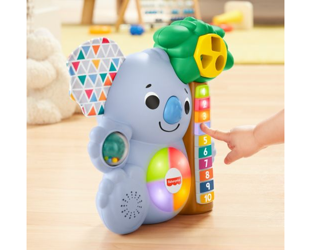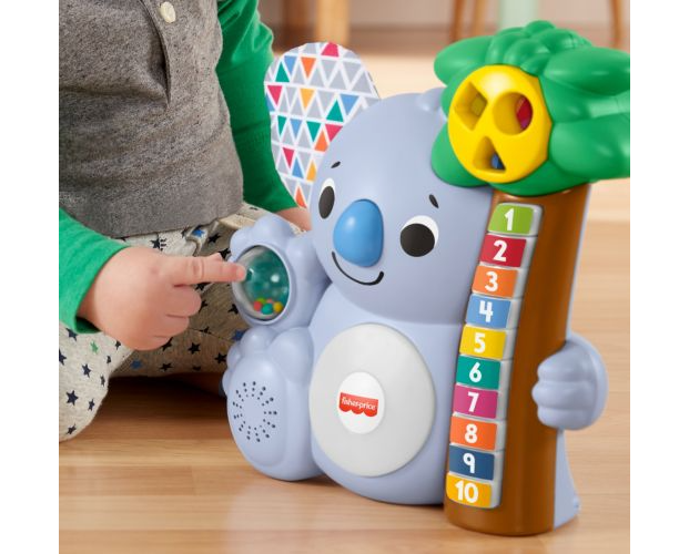 Koale uwielbiają wspinać się na drzewa! Ale to drzewko jest niezwykłe – pomaga w nauce liczenia i kształów! Interaktywny Koala Linkimals™ Fisher-Price® to muzyczna zabawka edukacyjna dla dzieci z wesołymi światełkami, piosenkami i wypowiedziami, które wprowadzają maluszka w świat liczb, liczenia i kształtów. Elementy do zabawy – takie jak obrotowa kuleczka, kręciołek z kształtami i przyciski – dodatkowo pomagają wzmacniać zręczność maluszka, a wesołe treści interaktywne pokazują zasadę przyczyny i skutku. Gdy Interaktywny Koala spotka się z innymi przyjaciółmi Linkimals™, zaczynają rozmawiać, wspólnie śpiewać i świecić się! (Dodatkowe zabawki z linii Linkimals™ są sprzedawane oddzielnie w zależności od dostępności). Zawartość edukacyjna w języku polskim.