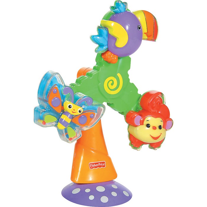 Na kolorowym drzewku kręcą się trzy sympatyczne zwierzątka: małpka, tukan z dzwoneczkiem i motylek z kolorowymi koralikami. Zabawkę możesz przyczepić do większości gładkich powierzchni, by uroczy przyjaciele towarzyszyli maluszkowi siedzącemu na krzesełku lub w wózeczku!