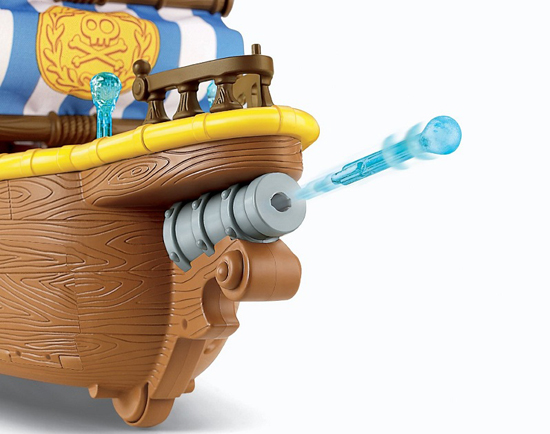 Na pokładzie Łajbka nie zabrakło zjeżdżalnia, po której figurki mogą zjeżdżać by znaleźć się w samym środku akcji. Gdy będziesz pchać Łajbka na kołach, okręt będzie się bujał z burty na burtę, jakby żeglował po falach.