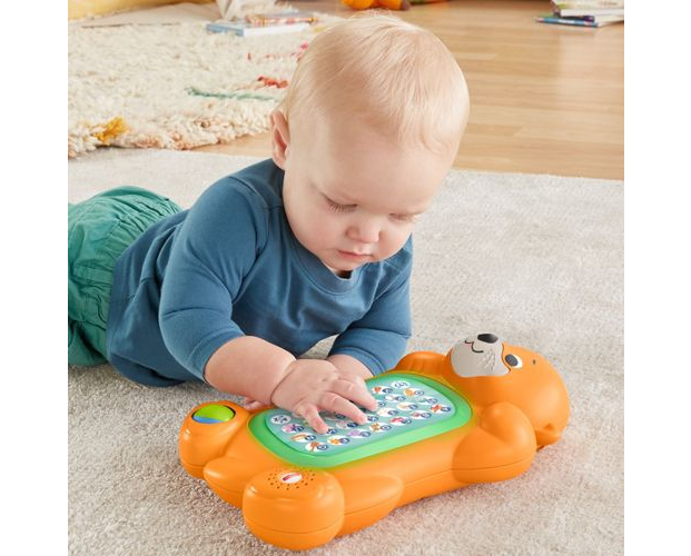 Na brzuszku Interaktywnej Wydry z linii Linkimals™ od Fisher-Price® czeka na Twoje dziecko mnóstwo zabawy i nauki. Naciskając przyciski, maluch będzie odkrywać litery alfabetu i usłyszy proste słowo zaczynające się na daną literę. Dodatkowe przyciski aktywują muzykę oraz prośby o odnalezienie danej literki lub słowa! Wesołe piosenki o przyjaźni oraz światełka zachęcają do zabawy. A gdy Interaktywna Wydra rozpozna innych przyjaciół z linii Linkimals™, odtworzy wraz z nimi zsynchronizowany pokaz świateł i dźwięków! Interaktywne zabawki Linkimals™ reagują na siebie, świecąc, mówiąc i wspólnie śpiewając! (Dodatkowe zabawki Linkimals™ są sprzedawane oddzielnie). Zabawa, która rozwija. Wczesna nauka: wesołe piosenki, wypowiedzi i słówka wprowadzają malucha w świat alfabetu i uczą go pierwszych słów. Zręczność: naciskanie przycisków i obracanie kuleczki, by aktywować piosenki, pomaga wzmacniać zręczność i koordynację ręka-oko. (Jest to przy okazji oczywiście doskonała zabawa!). Zawartość edukacyjna w języku polskim.