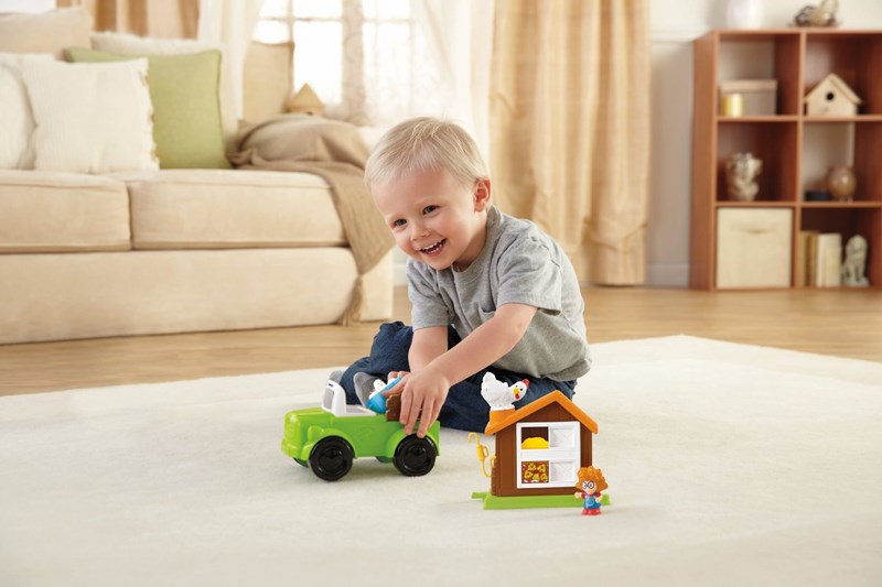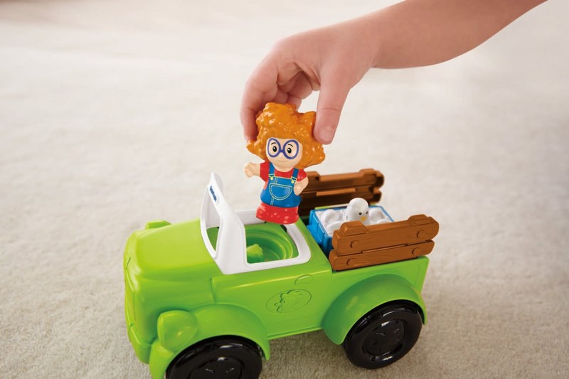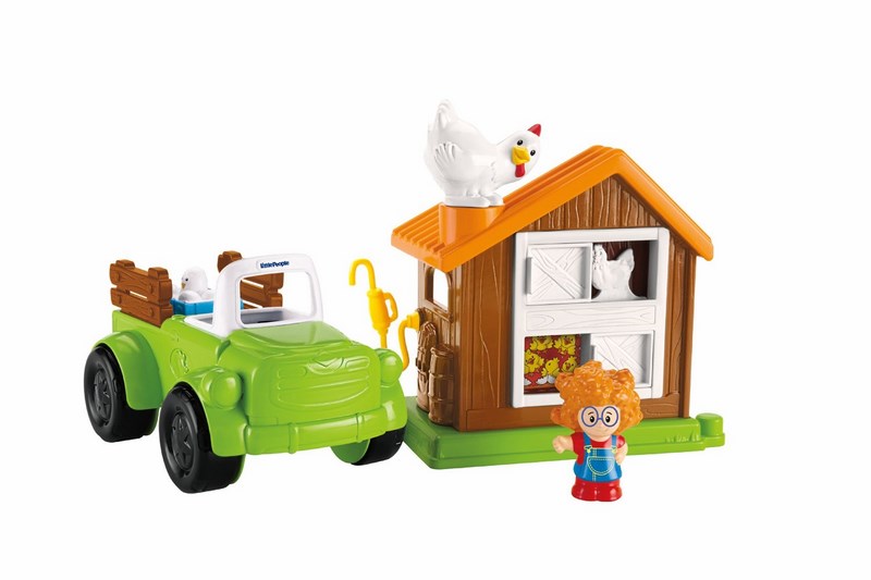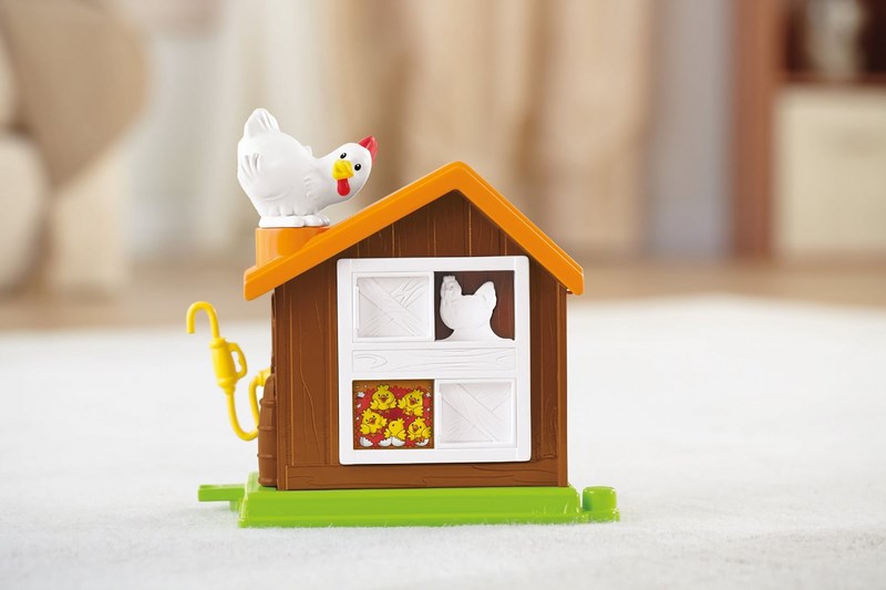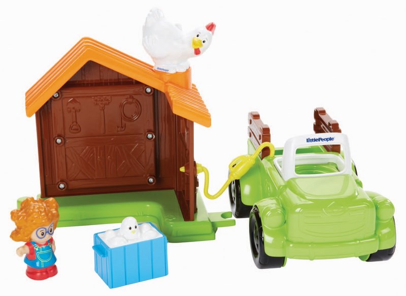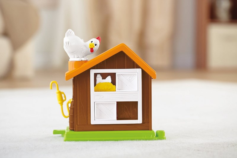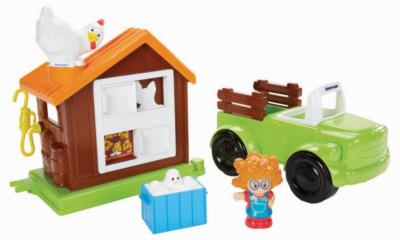 Sofie podjeżdża swoim pikapem pod kurnik, aby załadować skrzynkę jajek! Samochód ma otwarty dach, aby można było posadzić Sofię na siedzeniu kierowcy. Z tyłu jest nawet miejsce dla przyjaciela Little People®, który może towarzyszyć Sofii. Sofie podchodzi do kurnika i otwiera magiczne drzwi, znajdując tam gniazdko albo kurki. Kiedy już wszystko załaduje i będzie gotowa wracać do miasta, może zatankować samochód w dystrybutorze przy kurniku! To całe mnóstwo wesołych zajęć dla Sofii i Twojego maluszka!
