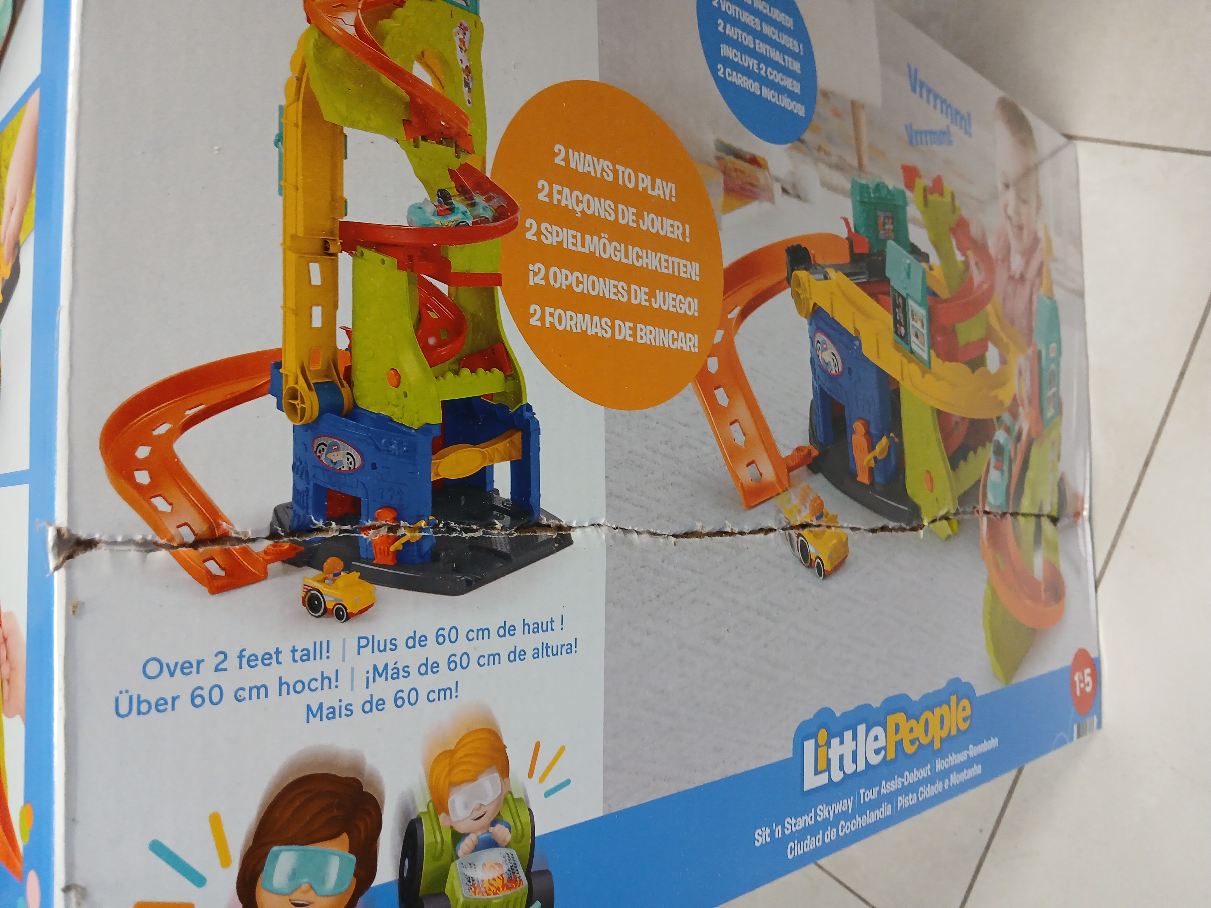 Fisher-Price Little People Tor Zjeżdżalnia Garaż 2w1 HBD77 to fantastyczny zestaw który możemy przekształcić na dwa sposoby. Zestaw możemy ustawić jako stojącą wieżę z torem wysoką na 86 cm, gdzie pojazdy pędzą niczym po zakrętach niczym po górskich serpentynach. Następnie wieżę za pomocą jednego przycisku możemy zmienić w garaż, z myjnią, zjeżdżalnią i sklepikiem.
