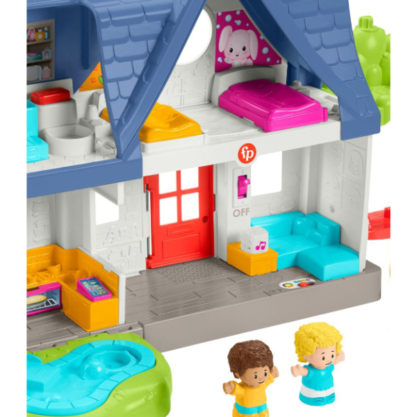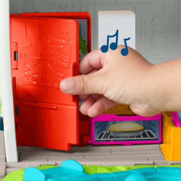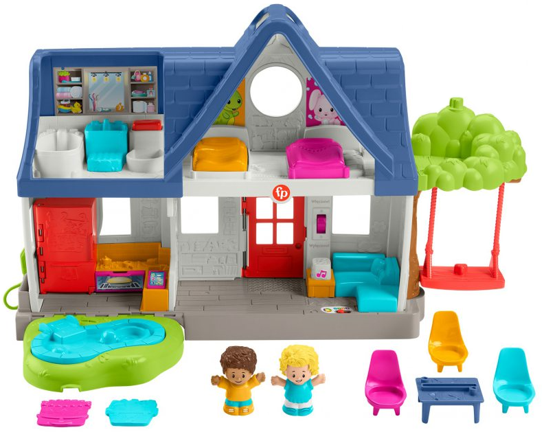 Wspaniały edukacyjny domek zabaw w rozmiarze idealnym dla malucha! Ten interaktywny zestaw jest pełen niesamowitych przygód i wciągającej zabawy. Baw się 3 figurkami przyjaciół w różnych pokojach, na patio z basenem oraz na huśtawce na drzewie. W miarę zabawy treści edukacyjne „Poziomy nauki” wprowadzają dziecko w świat literek, liczenia, kolorów i nie tylko, jednocześnie zachęcając je do wymyślania własnych kreatywnych opowieści.