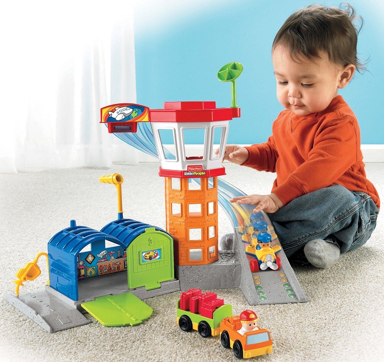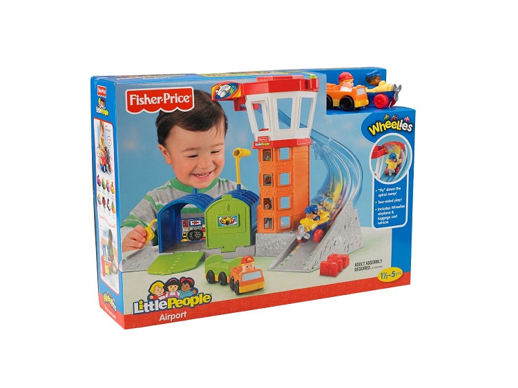 Lotnisko małych odkrywców to zabawa pełna przygód, która zabiera pojazdy i figurki na podniebną wyprawę! W zestawie jest hangar dla samolotów, wieża kontroli lotów i spiralny pas startowy. Hangar otwiera się i zamyka, w wieży można odprawiać pasażerów, jest restauracja dla podróżnych i lądowisko dla helikopterów. W zestawie znajduje się samolot i wózek bagażowy z przyczepą i bagażem. Pojazdy, o wielkości idealnej dla małych rączek, mają wbudowane figurki Little People.