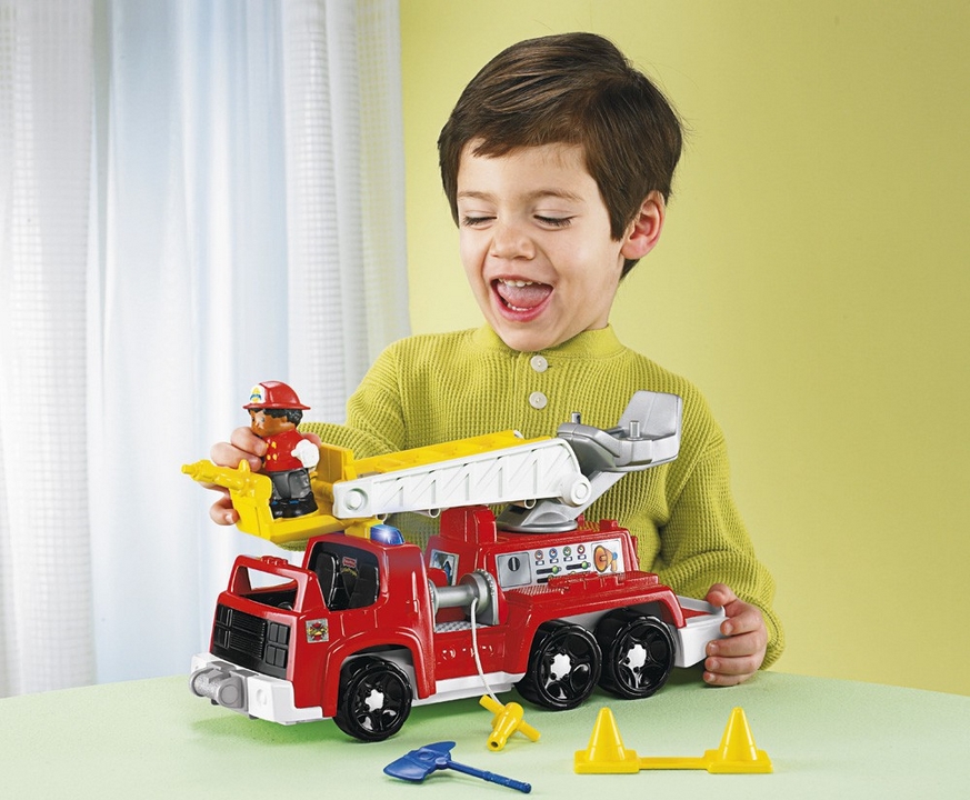 Fisher Price Little People Wóz Strażacki L3940 to niezwykły wóz strażacki Koby'ego, który przeniesie wszystkich małych strażaków w świat ratunkowych akcji! Posadź Koby’ego na siedzeniu kierowcy, ruszaj na miejsce pożaru, a następnie użyj podnośnika, aby ugasić płomienie! W wozie strażackim znajduje się wbudowany wąż, ruchoma drabina oraz pachołek drogowy, dzięki czemu zabawa będzie jeszcze bardziej realistyczna.