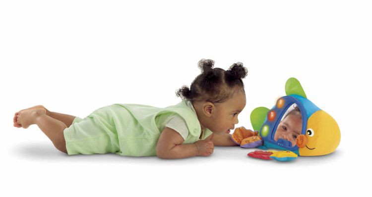 Lusterko w kształcie rybki z serii Cuda Oceanu z przyczepionymi morskimi zwierzątkami zabawi dziecko w łóżeczku lub na podłodze. Po zamocowaniu lusterka w łóżeczku, dziecko może uruchamiać światełka, melodyjki lub efekty dźwiękowe, ciągnąc za wiszące zabawki lub potrącając je. 3 kolorowe światełka pulsują podczas odtwarzania 2 krótkich piosenek. Zabawkę można także położyć na podłodze: przeglądanie się w lustereczku, uruchamianie dźwięków i światełek poprzez potrącanie bujającej się rybki będzie wspaniałą zabawą dla leżącego lub siedzącego dziecka