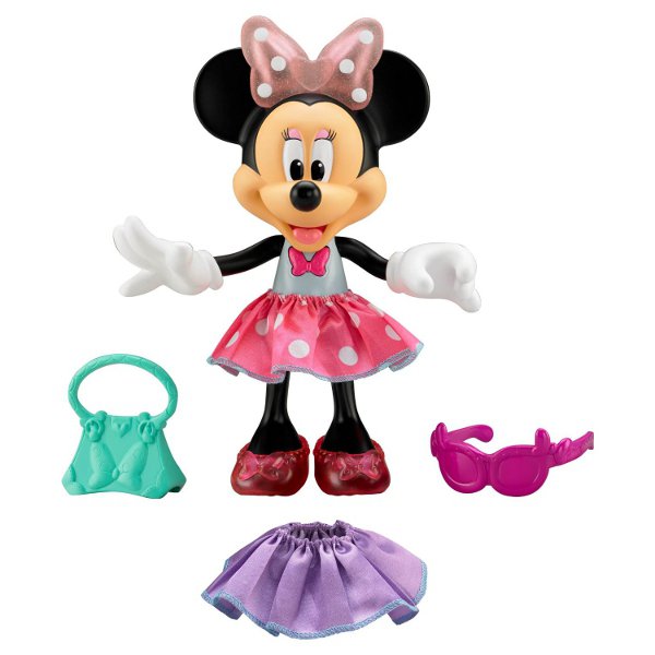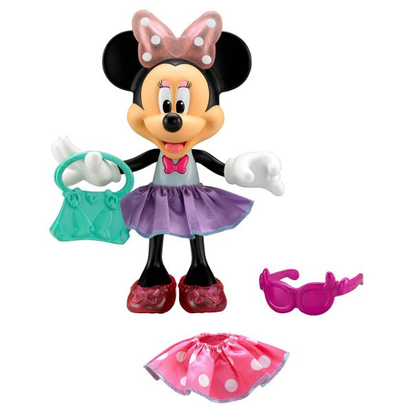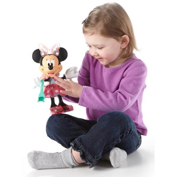 Śliczna Minnie jest ubrana w uroczą sukienkę z kokardką, po naciśnięciu której aktywują się światełka i dźwięki! To mnóstwo radosnej interaktywnej zabawy w modę i odgrywanie najwspanialszych przygód tej uroczej bohaterki!