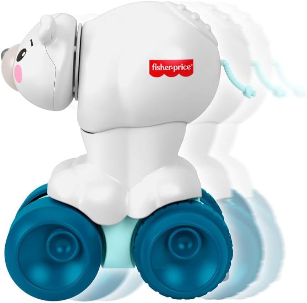 Miś polarny na kółkach „Raczkuj za mną” od Fisher-Price zachęci Twojego maluszka do raczkowania w ślad za zabawką. Wystarczy, że naciśniesz niedźwiadka, a ten popędzi do przodu, motywując Twojego szkraba do podążania za przyjacielem. Ta wesoła zabawka rozwojowa ma ogonek z materiału i klikającą głowę, które angażują zmysły dziecka, jednocześnie dając zajęcie małym rączkom.
