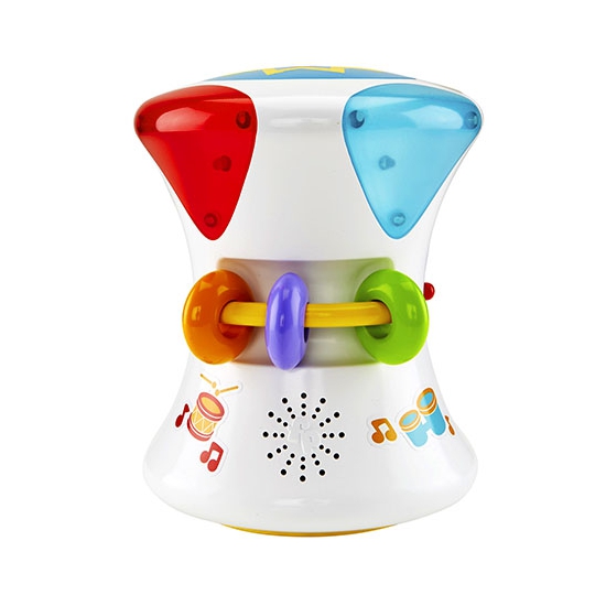 Muzyczny Bębenek 2w1 do turlania „rośnie” wraz z dzieckiem i oferuje trzy sposoby fantastycznej przygody z dźwiękami. Podczas zabawy na siedząco maluch może bawić się w dwóch różnych trybach. W pierwszym trybie dziecko może uderzać w bębenek, aby uruchomić taniec światełek i za każdym razem usłyszeć inny rytm! W trybie muzykowania dziecko może dodawać wesołe dźwięki, aby tworzyć własną „muzykę”. Gdy niemowlak będzie gotów do raczkowania, może gonić toczący się bębenek, a muzyka i światełka będą nagrodą za raczkowanie. Dziecko rozwija sprawność ruchową, manualną, wzbudza ciekawość.