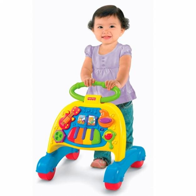 Stawianie pierwszych samodzielnych kroków będzie fascynującą zabawą z tym solidnym muzycznym chodzikiem. Jest to prawdziwe mobilne centrum zabaw z muzyką i dźwiękami. Zabawę można zacząć, gdy dziecko jeszcze nie chodzi: gdy siedzi może uruchamiać instrumenty na muzycznym panelu: gitarę, pianinko i marakasy oraz "przeglądać" książeczkę. Gdy potrąca, przekręca, naciska elementy, słychać dźwięki!