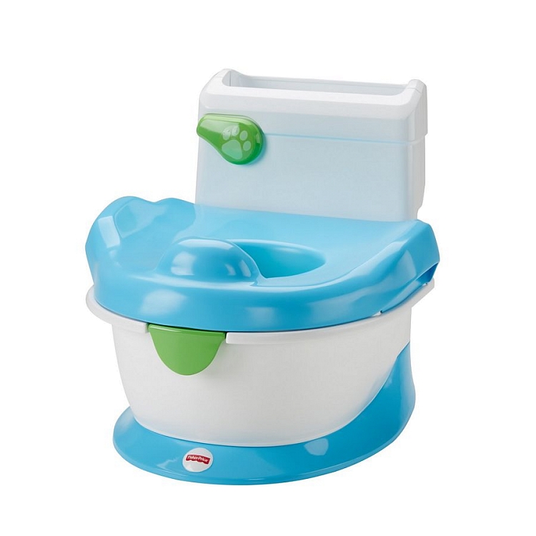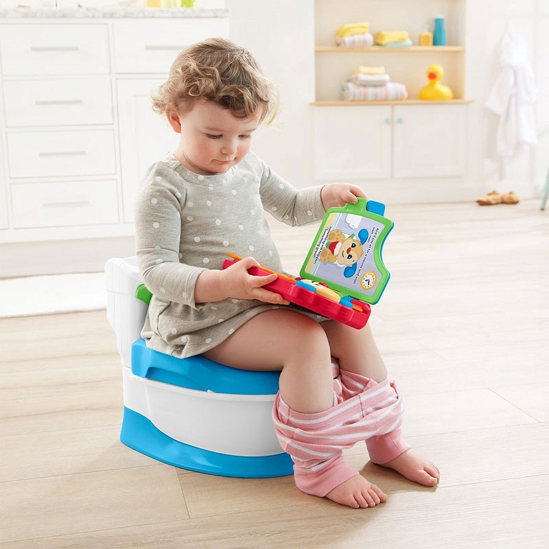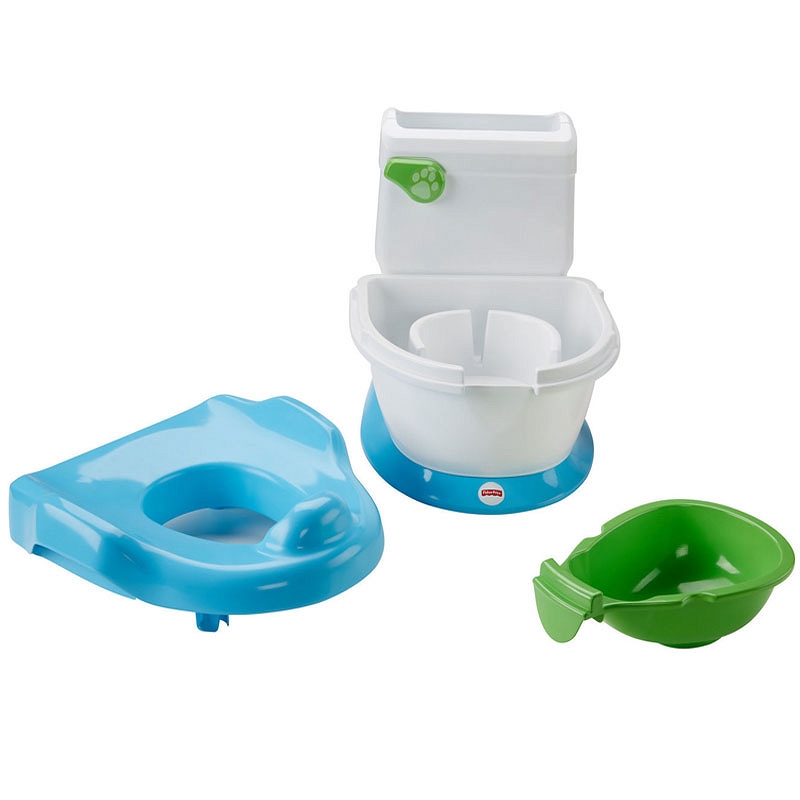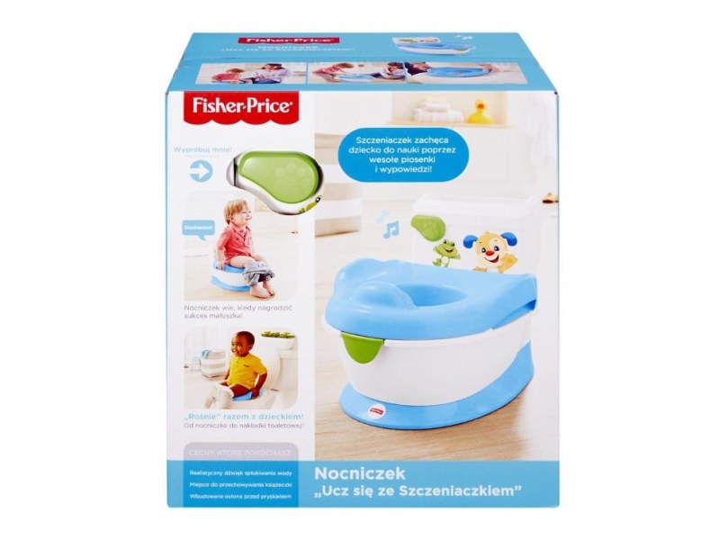 Fisher-Price Nocniczek uczę się ze szczeniaczkiem FRG81 z serii " ucz się i śmiej" ułatwia naukę korzystania z nocniczka. Uroczy nocniczek sprawi, że Twoje dziecko szybko zapomni o pieluszkach. Jego kształt przypomina prawdziwą toaletę, a radosna muzyka i dźwięki nagradzają każdy sukces malucha. Gdy dziecko „spuści” wodę, usłyszy radosne wypowiedzi i realistyczny dźwięk spuszczanej wody. Uchwyty na zdejmowanej nakładce nocniczka dają dziecku poczucie bezpieczeństwa, a sama nakładka pasuje na większość prawdziwych toalet, co ułatwia korzystanie z dużych toalet (np. w podróży).