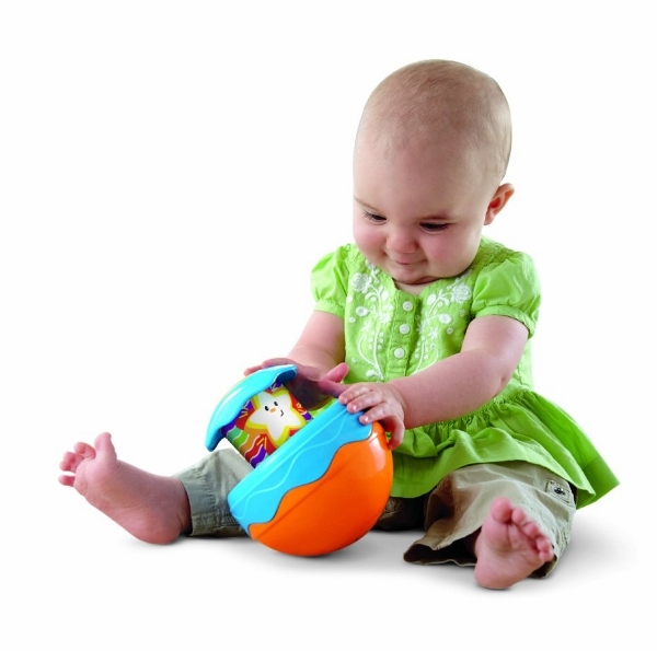 Zaskocz dziecko za każdym razem, gdy bawi się piłeczką "A kuku". Piłeczka jest łatwa do chwytania i turlania przez dziecko. Gdy maluszek naciska na pokrywkę piłeczka wydaje śmieszne piszczące dźwięki a gdy dziecko ją poturla, piłeczka grzechocze. Dziecko będzie uwielbiało odkrywać, jak buzia pojawia się podczas zabawy. Zabawka stymuluje do ćwiczenia i rozwijania sprawności fizycznej, doskonalenia umiejętności motorycznych a także pomaga zrozumieć ideę przyczyny i skutku.