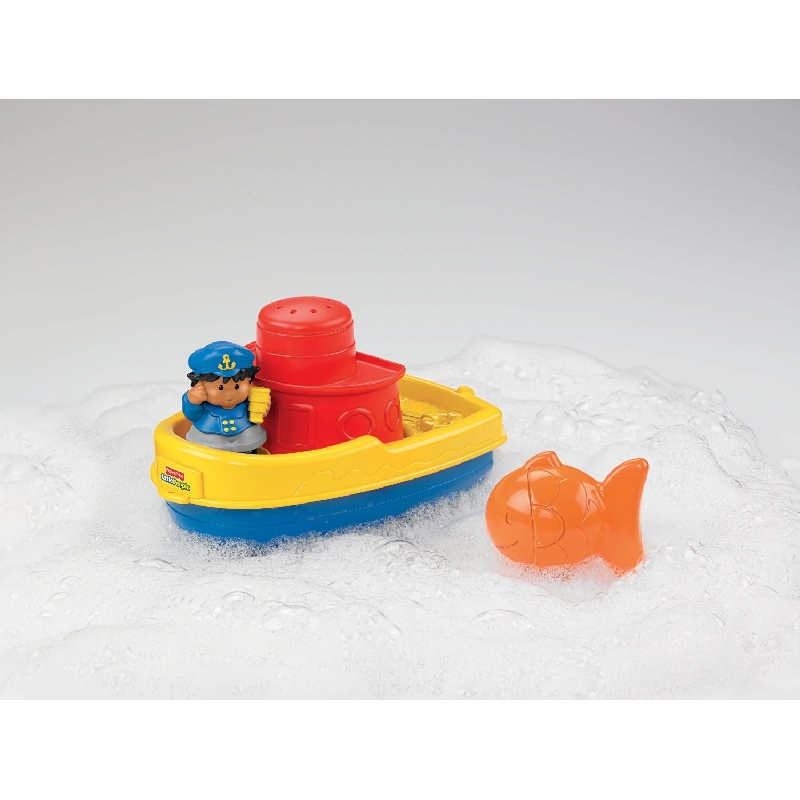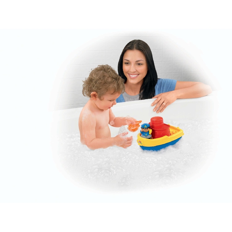 Dzięki Pływającemu stateczkowi X0059 dzieci mogą zabrać swoje figurki Little People na wspaniały rejs po wannie! Mogą też bawić się w swoje ulubione wodne zabawy: nalewanie, wylewanie lub przelewanie przez sitko. Figurkę kapitana można ustawić na statku. Kabina służy jednocześnie jako czerpak i sitko. Do nalewania można użyć także rybki. Po dopłynięciu do portu wszystkie elementy można schować na statku.