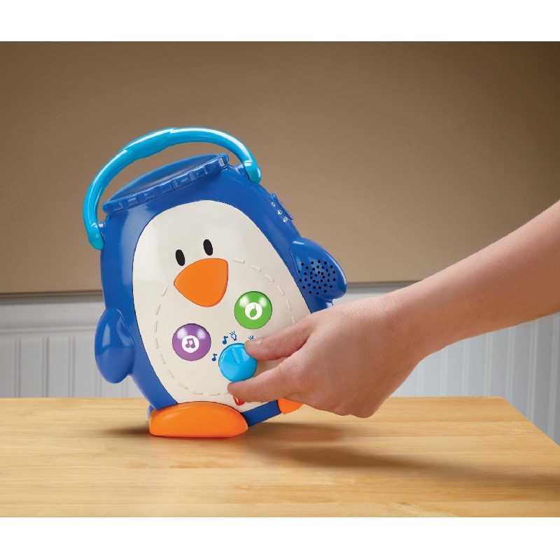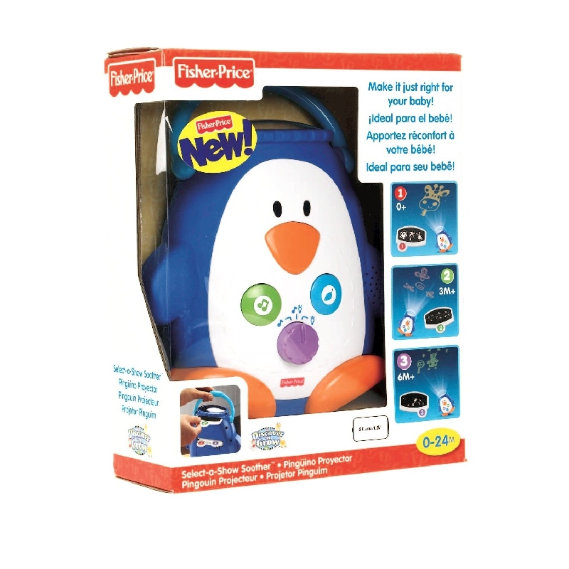 Przenośny Projektor-Uspokajacz Pingwin to nowa wersja przenośnego projektora-uspokajacza „Cuda oceanu”, który cieszył się dużym powodzeniem, teraz wzbogacona o dodatkowe możliwości. 3 przyciski z przodu służą do wybierania rodzaju muzyki:można wybrać muzykę klasyczną, kołysanki lub dźwięki natury. Wciskając przycisk wyboru trybu, mama może wybrać sposób korzystania z zabawki (tylko muzyka, tylko projekcje, projekcje z muzyką). Za pomocą suwaka z boku można wyłączyć zabawkę lub ustawić głośność (są 2 poziomy głośności).Zestaw zawiera także 3 karty do projektora, z różnymi obrazkami dostosowanymi do wieku i etapu rozwoju dziecka.