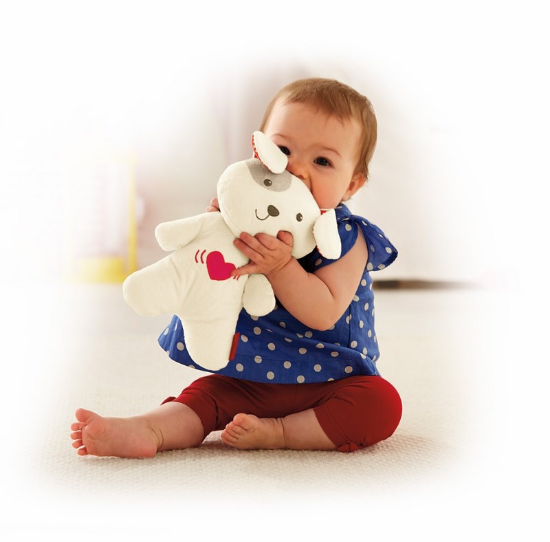 Ten uroczy pluszowy przyjaciel pomoże w uspokojeniu dziecka w domu i na spacerze! Miękki szczeniaczek jest doskonały do przytulania i pomaga dziecku zrelaksować się przy kojącej muzyce (do 10 minut) i łagodnych wibracjach. Wystarczy nacisnąć serduszko pieska! Pomaga stymulować zmysły dziecka i stworzyć przytulną, uspokajającą atmosferę przed drzemką lub wieczornym zasypianiem. Można prać w pralce (po wyjęciu części elektronicznych).
