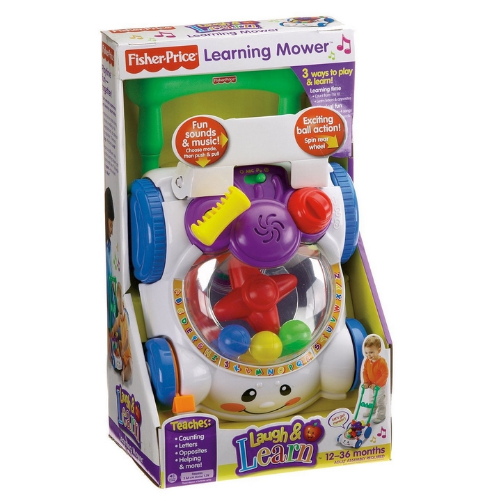 Rezolutna Kosiareczka W1093 z serii Lough & Learn oferuje dziecku zabawę na 3 sposoby. W trybie nauki dziecko nauczy się wielu rzeczy: kolorów, kształtów, przeciwieństw i słów oznaczających czynności. W trybie muzyki dziecko usłyszy piosenkę o koszeniu i muzyczne rymowanki, które towarzyszą zabawie. Dodatkowo muzykę można przyciszyć, korzystając z przełącznika głośności. W trybie wyobraźni maluszek usłyszy realistyczny dźwięk kosiarki, gdy będzie się z nią poruszać.