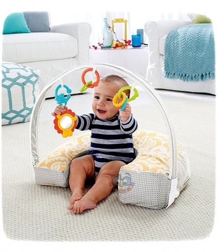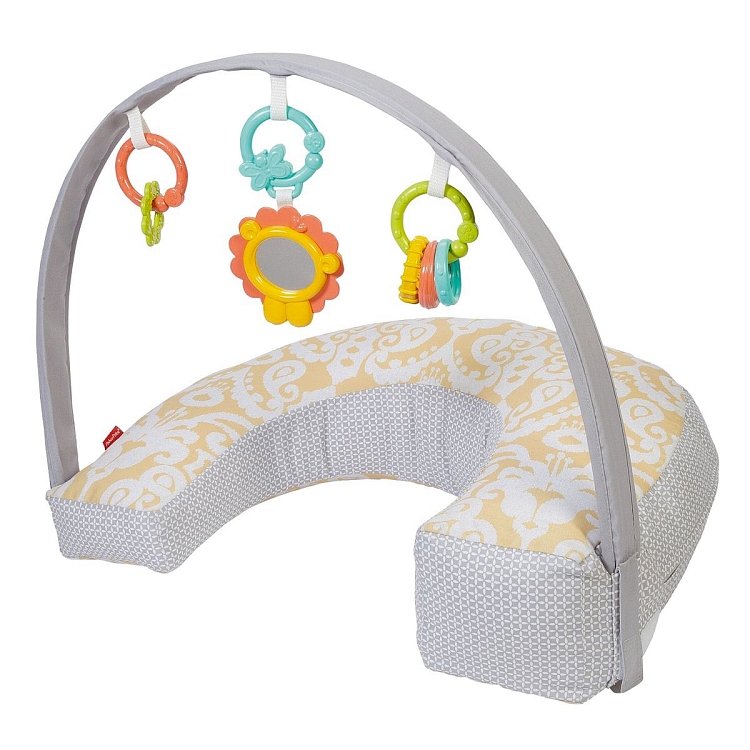 Dzięki wyjątkowej konstrukcji i możliwości zmiany pozycji wraz z wiekiem dziecka ta poduszka-rogal do karmienia to najlepsze rozwiązanie dla świeżo upieczonych mam! Miękka poduszka w kształcie litery „U”, wysoka z jednej, a niska z drugiej strony, sprawia, że karmienie piersią lub z butelki jest bardziej komfortowe dla mam i dzieci. Wysoka z jednej strony (doskonała pozycja do karmienia noworodków, niemowląt i małych dzieci), a niska z drugiej (aby zapewnić większym dzieciom wystarczające podparcie). Obróć poduszkę z wysokiej strony na niską, aby uzyskać wygodne podparcie dla malucha podczas karmienia, kiedy dziecko podrośnie! Zdejmowany pałąk z trzema przyczepianymi wesołymi zabawkami również „rośnie” z dzieckiem — najpierw poduszka służy jako rogalik z pałąkiem do zabawy w pozycji na pleckach, następnie jako rogalik do zabawy w pozycji na brzuszku, a później jako podparcie podczas zabawy na siedząco! Pokrycie z miękkiej tkaniny ma boczną kieszonkę, aby najważniejsze rzeczy zawsze były pod ręką. Pokrycie można prać w pralce, co ułatwia zachowanie czystości. I jeszcze coś — na górze jest uchwyt, który ułatwia przenoszenie poduszki w jednej ręce!