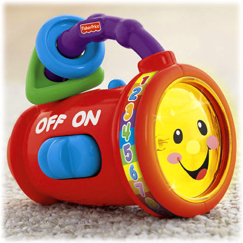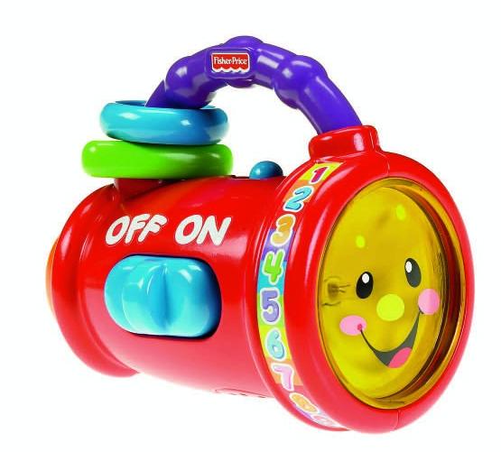 Ucząca latarka Lough & Learn to pierwsza własna latarka dziecka. gdy dziecko wciśnie guzik, usłyszy zabawne edukacyjne piosenki! Uchwyt z klekoczącymi kolorowymi krążkami ułatwia trzymanie i noszenie latarki. To idealna zabawka do zabrania na spacer lub w podróż!