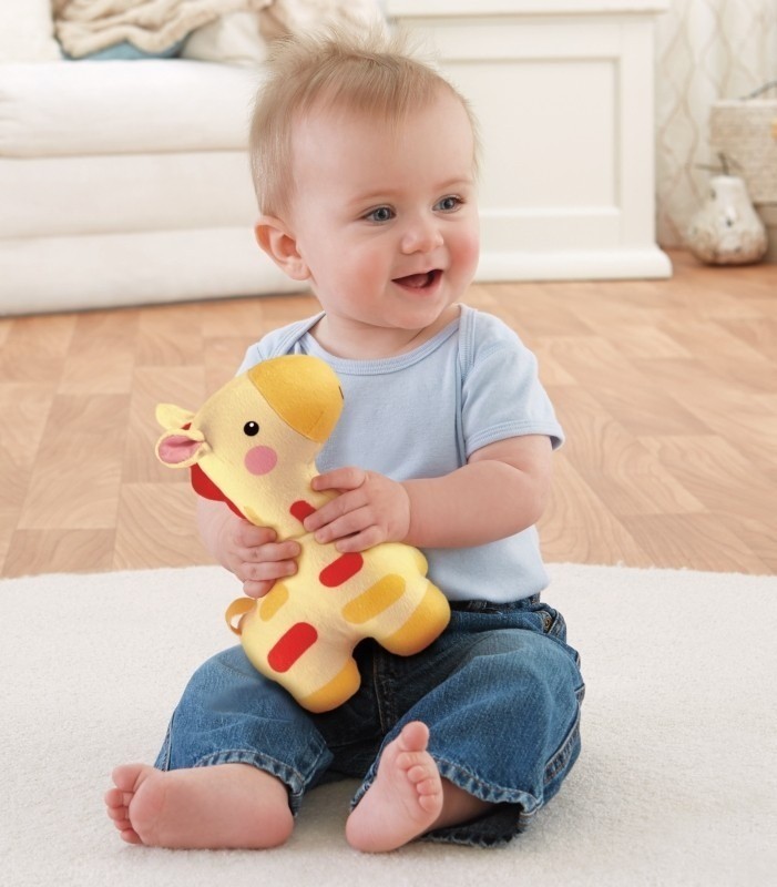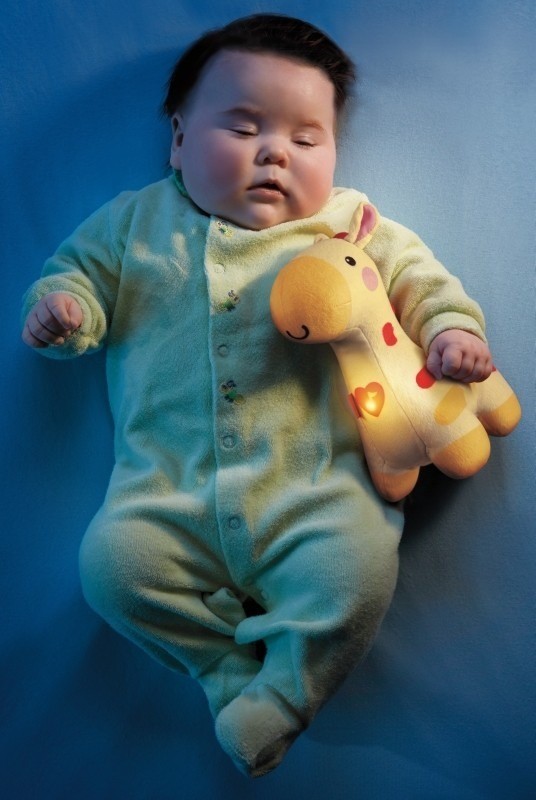 Ta Żyrafka to idealny przyjaciel do zasypiania dla dziecka! Miękka i milutka Żyrafka reaguje na delikatne przytulanie lub uścisk uspokajającą melodią kołysanek i łagodnym światłem. Następnie muzyka stopniowo ucicha... światełka przygasają... słodkich snów. Do 15 minut uspokajających kołysanek.