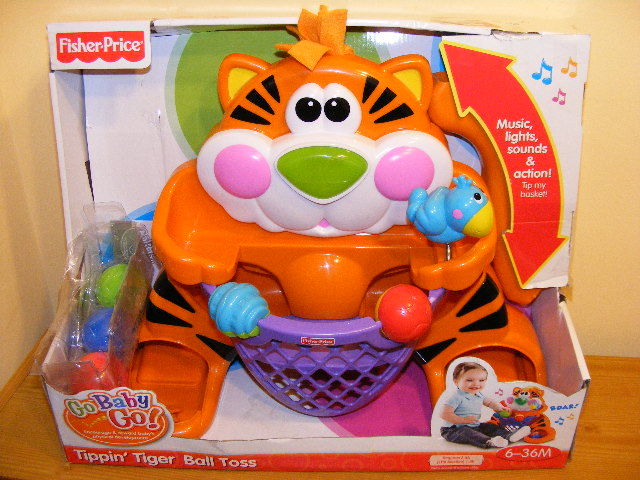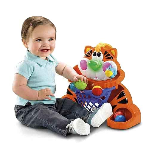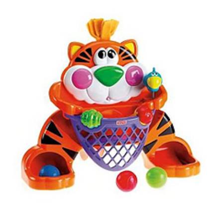 Wrzucanie kolorowych piłeczek do kosza trzymanego przez tygryska wspomaga ćwiczenie koordynacji oko-ręka i zapewnia dziecku wyśmienitą zabawę! Po wrzuceniu do kosza, piłeczki wypadają poprzez tunele w nóżkach tygryska. Zabawę urozmaicają śmieszne odgłosy, wesoła muzyczka jak i świecący nos tygryska.