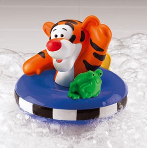Tygrysek razem z uśmiechniętą żabką unosi się na wodzie na kolorowym kółku do pływania. Po nakręceniu nasz bohater ochoczo wywija ogonem i obraca się na swoim pływającym spodku. Zabawka doskonale sprawdzi się w wannie oraz na basenie. Z pewnością umili i dodatkowo uatrakcyjni dziecku czas spędzony wodzie.