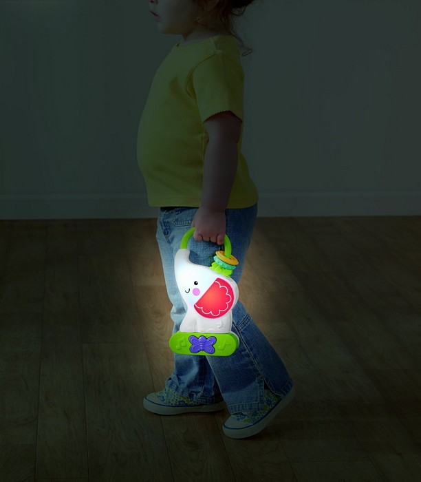 Słonik pomoże uspokoic dziecko w łóżeczku lub w podróży. Można go postawić lub powiesić za uchwyt - zawsze znajdzie się dla niego miejsce - np. na klamce drzwi! Słonik ma funkcję lampki nocnej, świeci łagodnym kojącym światłem i można włączyć barwną poświatę w innym kolorze.