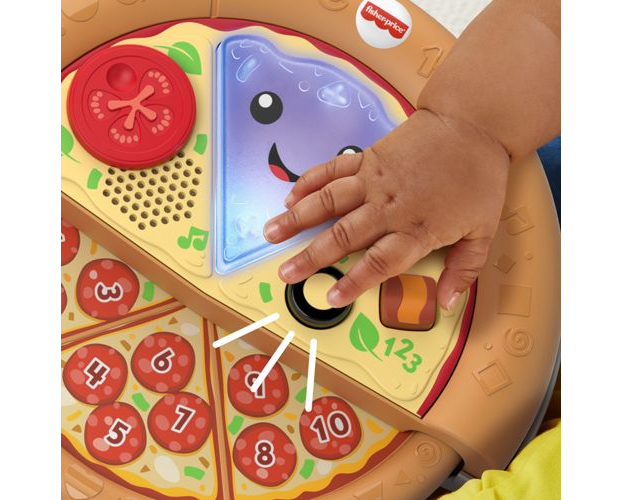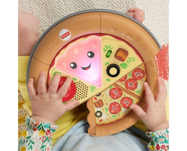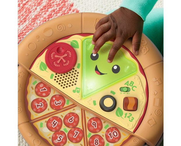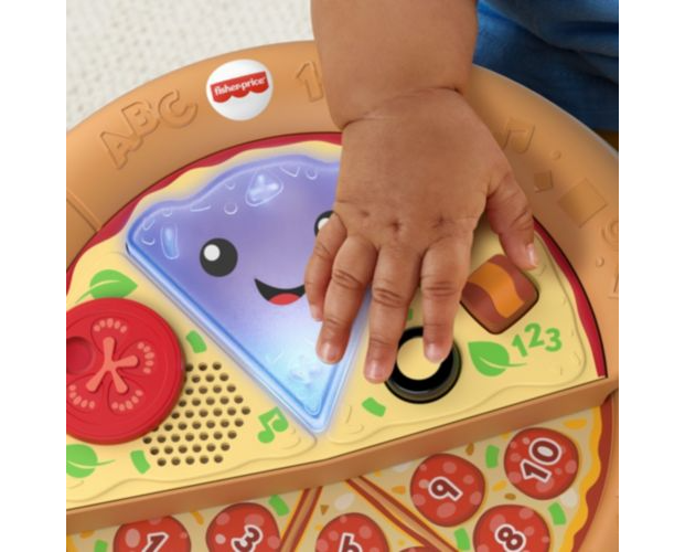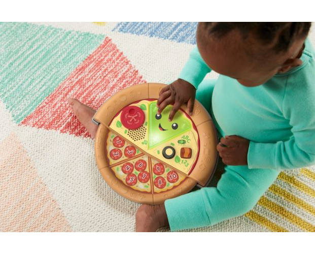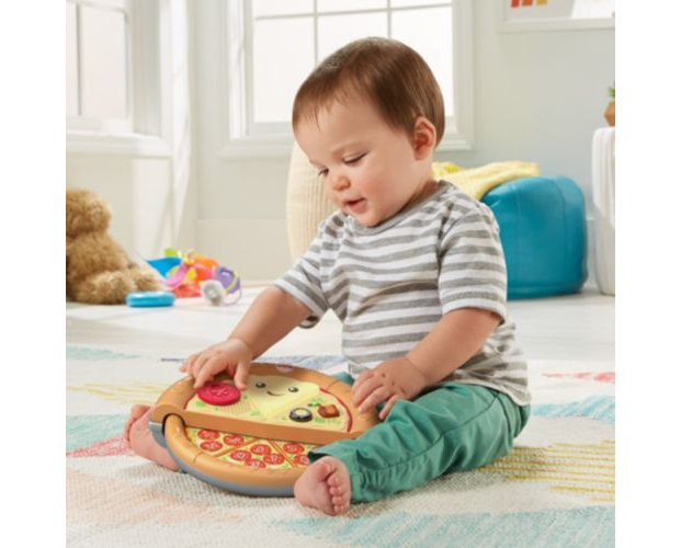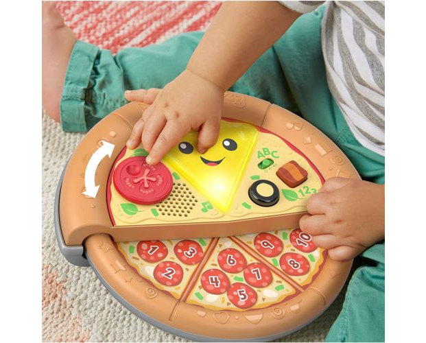Ulubiony przysmak Twojego malucha: pizza z „serem”, „pepperoni” i kształtami! Z tą muzyczną zabawką Fisher-Price® „Ucz się i śmiej!” Wesoła pizza „Pyszna nauka” dzieci mogą uczyć się liczenia, kolorów i kształtów podczas wybornej zabawy. Ta zabawkowa pizza ma podświetlaną „serową” buzię, wysuwaną połowę z „pepperoni” oraz dwa przyciski składników, które małe rączki dziecka mogą łatwo naciskać, aby aktywować światełka i muzykę. Pyszne ćwiczenia takie jak obracanie „pomidorka” i wysuwanie drugiej połowy pizzy pomagają wzmacniać zręczność, a wesołe piosenki oraz wypowiedzi wprowadzają dziecko w świat cyferek i nie tylko. Zawartość edukacyjna w języku polskim.