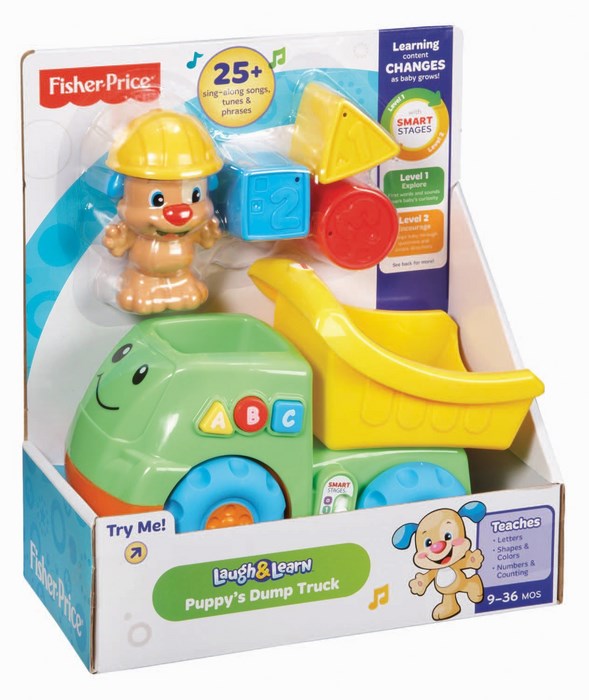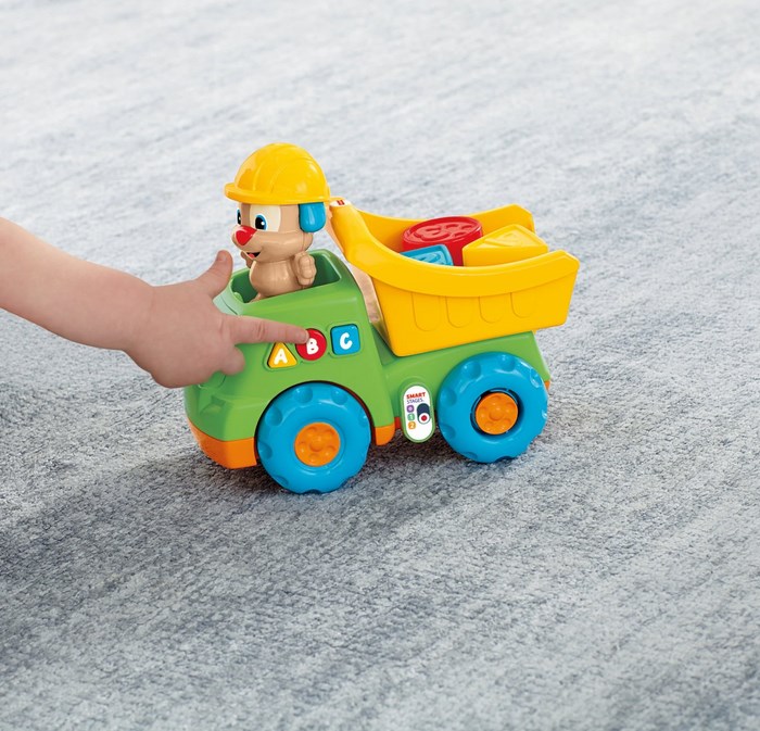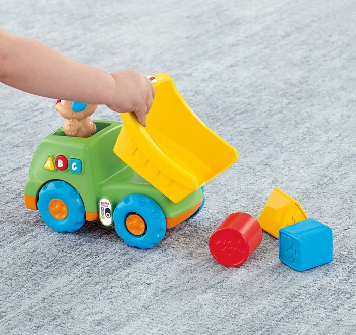 Wywrotka Szczeniaczka to mnóstwo radosnej zabawy dla malucha – wystarczy, że dziecko popchnie wywrotkę lub naciśnie jeden z trzech przycisków o różnych kształtach, aby aktywować piosenki i powiedzonka. Dzięki technologii „Poziomy nauki” treści dostosowują się do wieku maluszka – wystarczy przesunąć przełącznik, aby maluch mógł słuchać piosenek, zwrotów i wyrażeń odpowiednich dla jego etapu rozwoju.