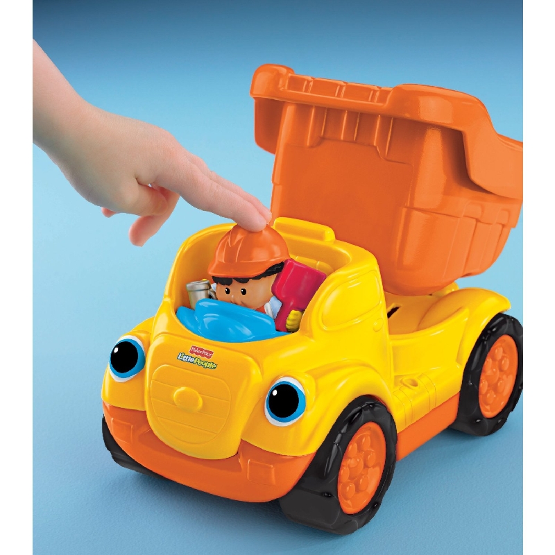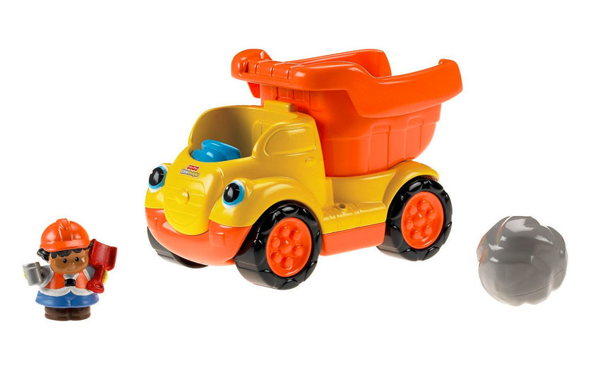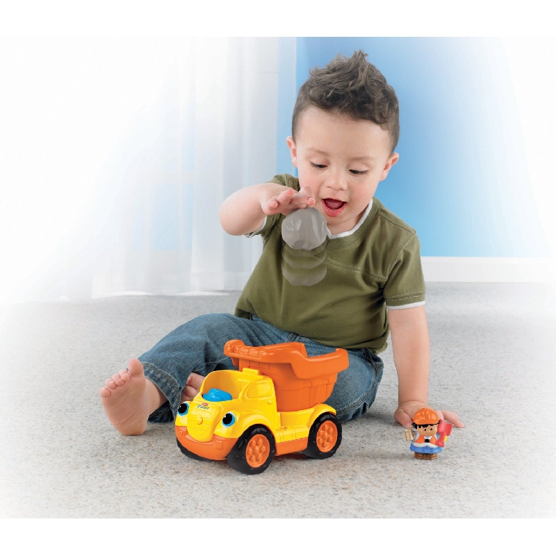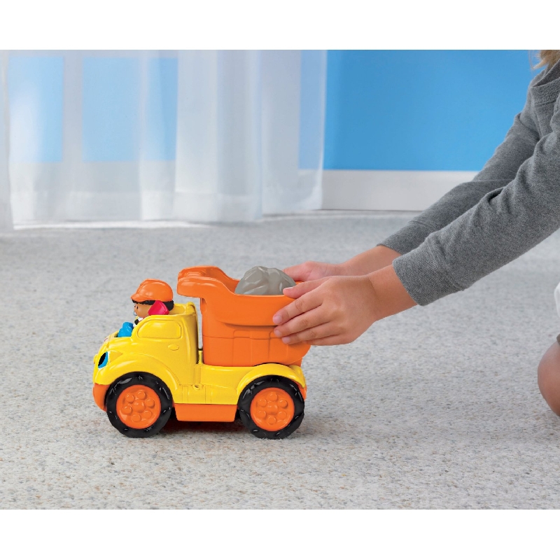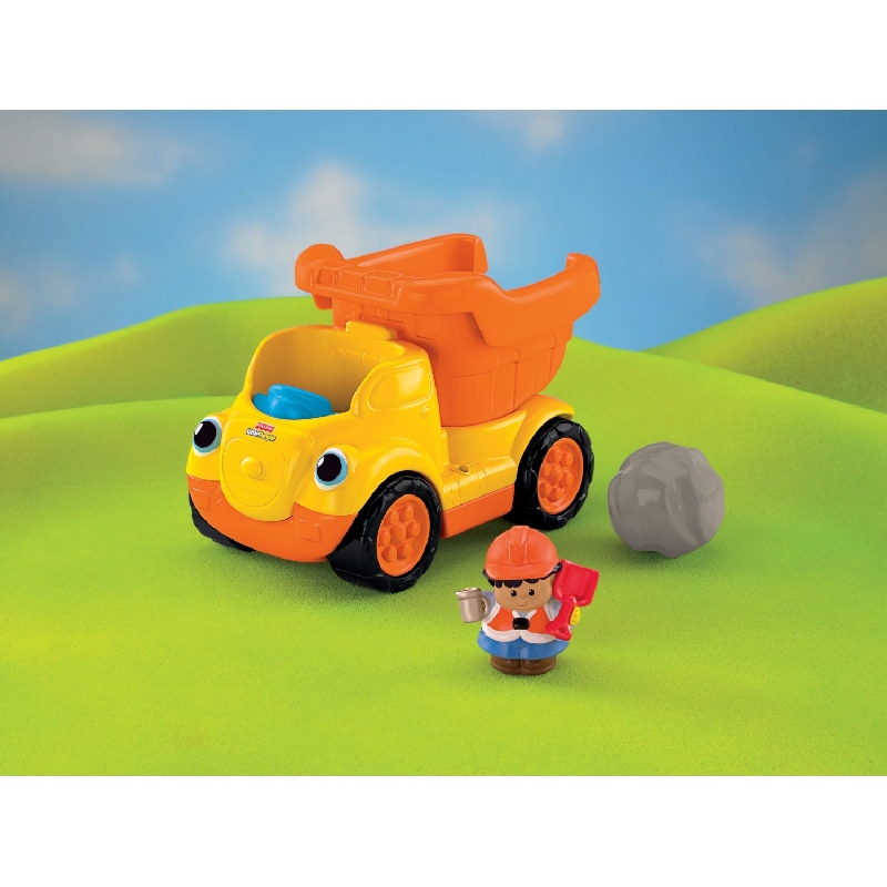 Wywrotka z dudniącymi głazami R6075 to rewelacyjnie wykonany pojazd z serii Little People. Jest bardzo kolorowy, duży i do tego z efektami dźwiękowymi! Załaduj głaz i przechyl ruchomą naczepę, aby go zrzucić. Gdy naciśniesz figurkę na siedzeniu kierowcy to usłyszysz zabawne dźwięki i wesołą melodyjkę. Gdy natomiast będziesz pchać wywrotkę - usłyszysz terkotanie dudniącego kamienia, który będzie podskakiwał w naczepie.