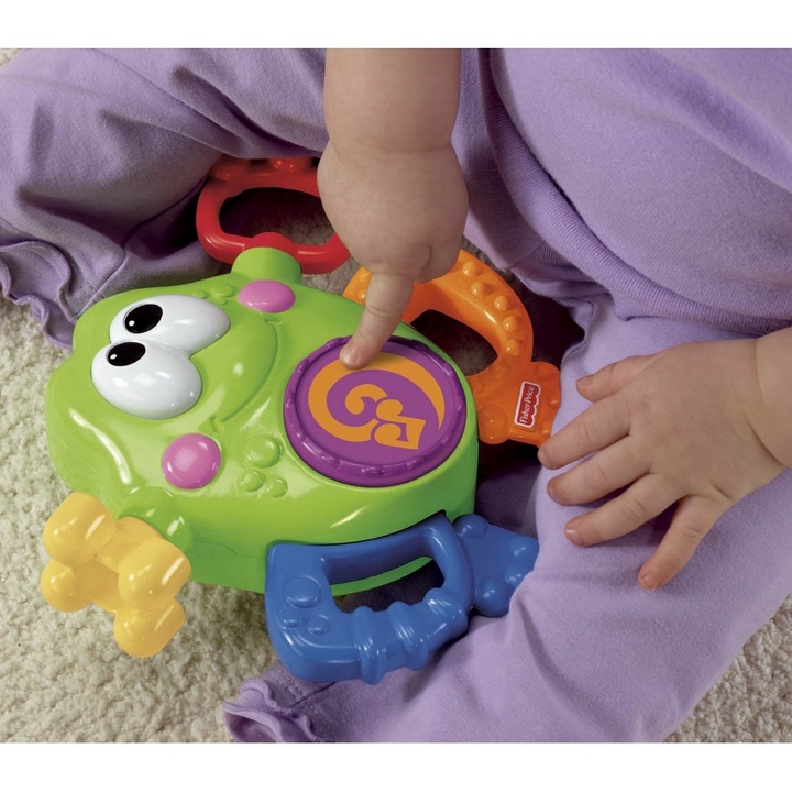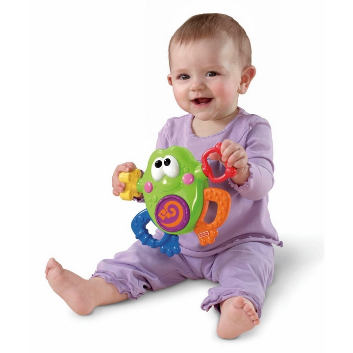 Żabka Śmieszka z serii Go Baby Go zachęca dziecko do aktywności i potrafi za to nagrodzić! Dziecko może manipulować i poruszać żabką na różne sposoby: ciągnąć, pchać, kręcić lub przesuwać. Gdy dziecko pociągnie lub popchnie za jedno ramię, usłyszy zabawny efekt dźwiękowy. Gdy przekręci inne, usłyszy melodyjkę lub ciekawy dźwięk. Gdy pociągnie za jedną nogę, okrągły brzuszek żabki zacznie się kręcić, a gdy za drugą, będzie słychać klikający dźwięk.