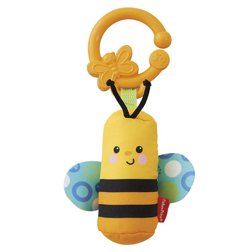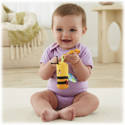 Wesoła pszczółka zaprasza do zabawy pełnej radości i dźwięków! Do miękkiej Pszczółki można się przytulić, a gdy się nią potrząśnie, radośnie zadzwoni! Kolory, dźwięki i kształty stymulują zmysły dziecka.
