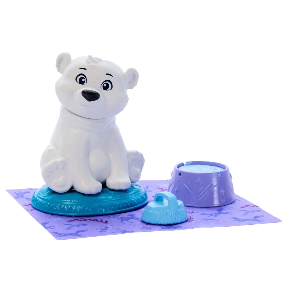 Elsa i uroczy niedźwiadek polarny odkrywają razem wspaniałą zabawę! W tym zestawie są lalka Elsa w zdejmowanym stroju, śliczna figurka niedźwiadka polarnego i cztery akcesoria do troszczenia się o pupila: kocyk, legowisko, szczotka i miseczka do przekręcania z „jedzenia” na „wodę”. Lalka nie stoi samodzielnie.